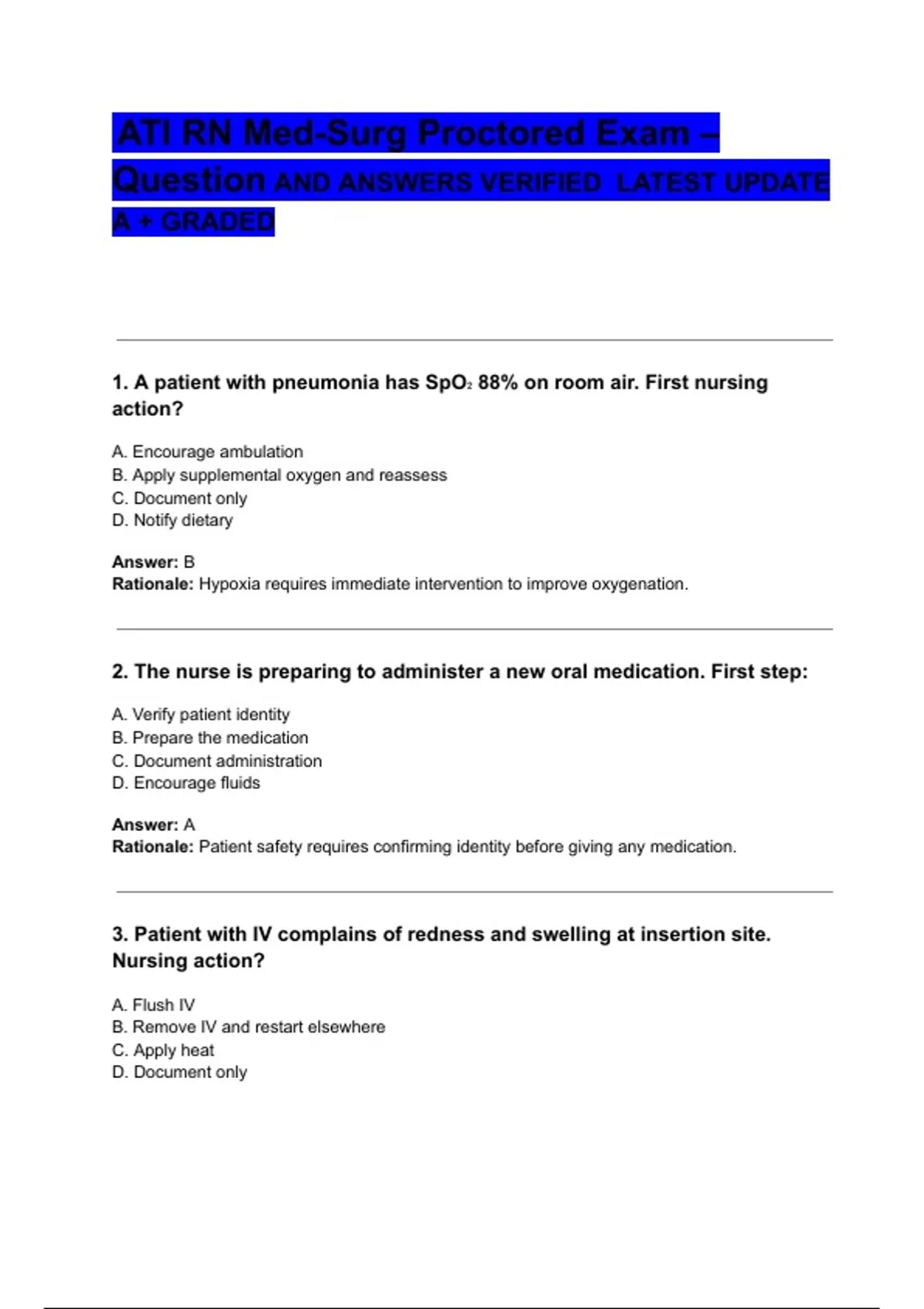 1. A patient with pneumonia has SpO₂ 88% on room air. First nursing
