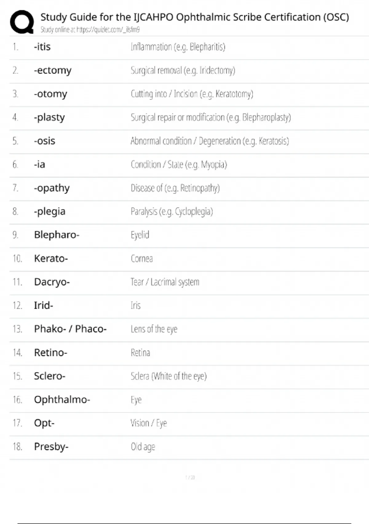 IJCAHPO Ophthalmic Scribe Certification OSC / Study Guide & Practice Test / Score 100% / 2025 Exam Prep