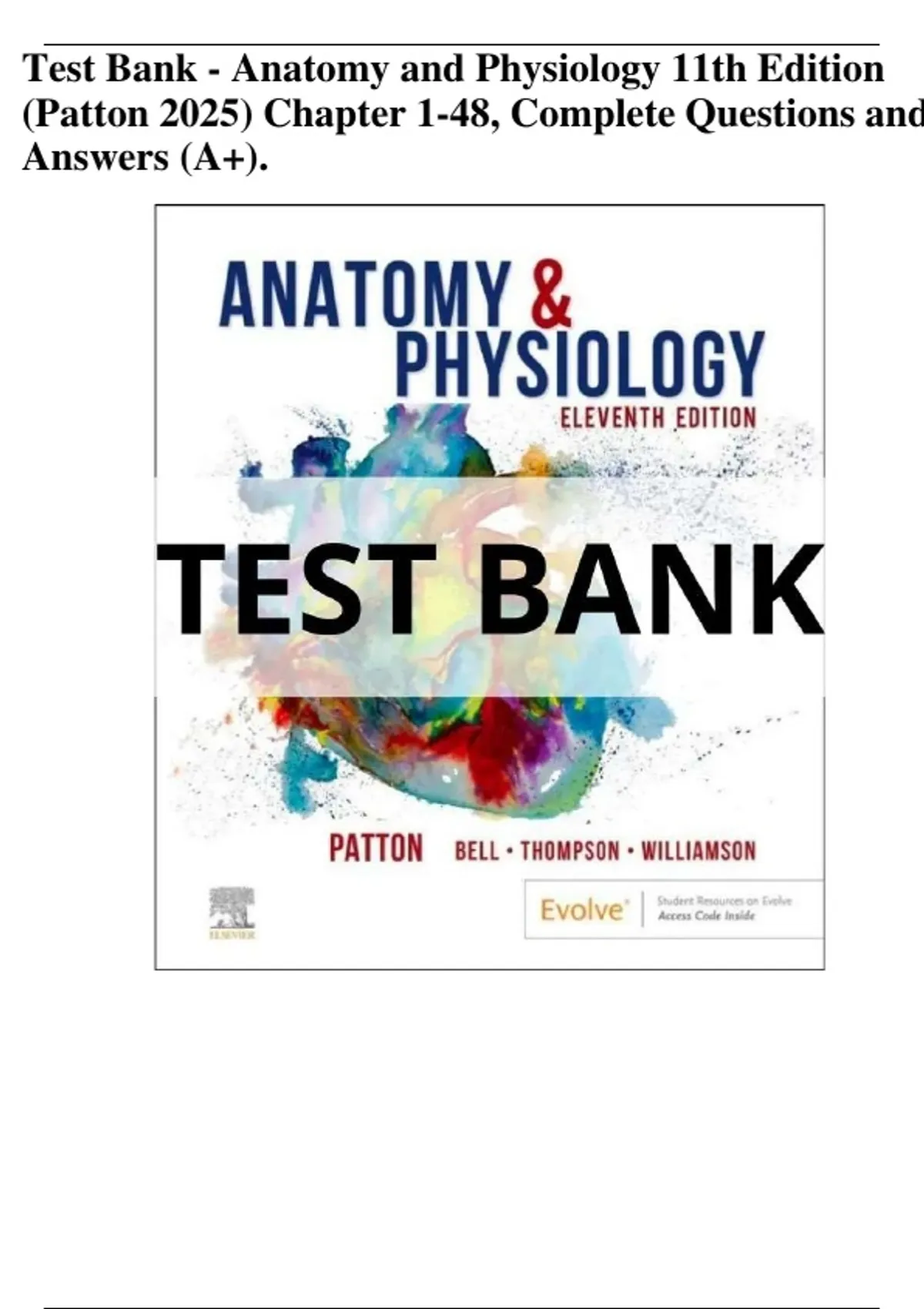 Official Test Bank for Anatomy & Physiology, 11th Edition by Patton, Bell, Thompson & Williamson. This digital resource includes all multiple-choice, matching, true/false, short answer, and essay questions