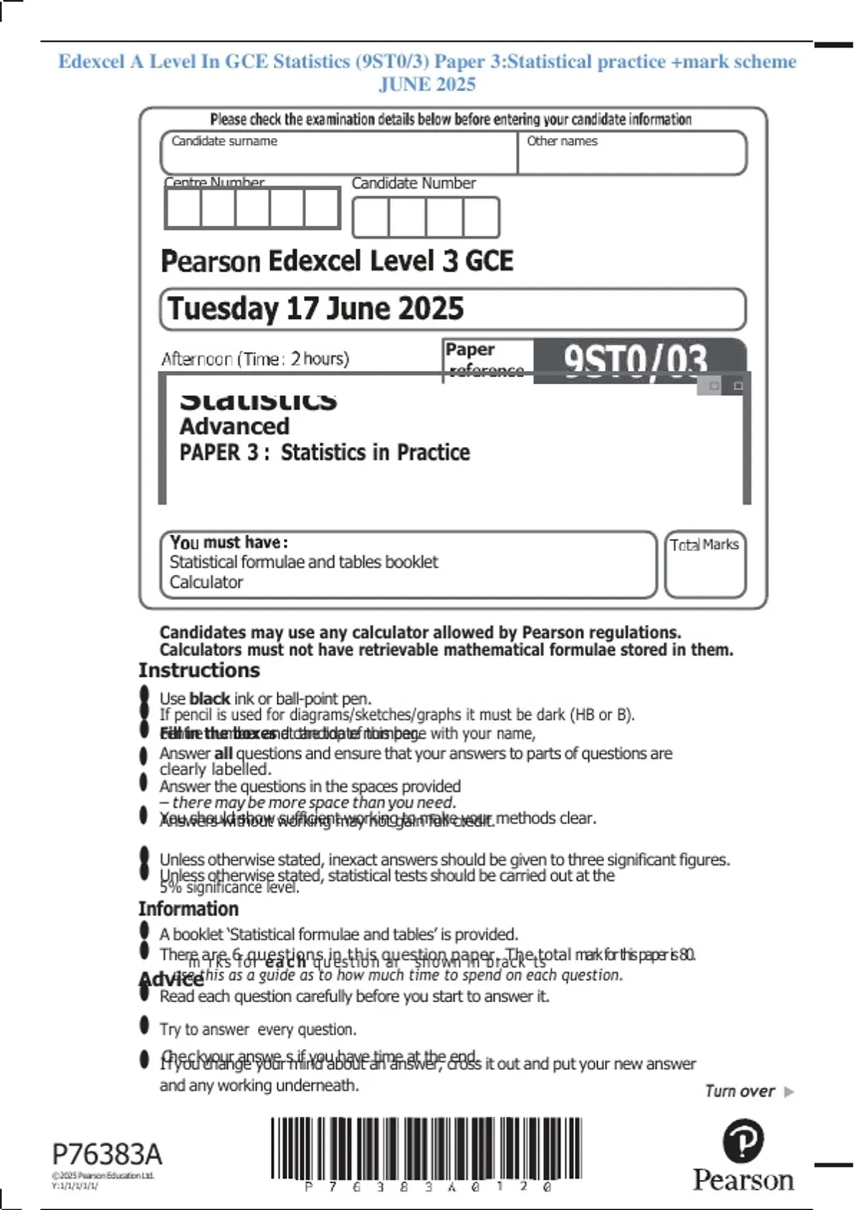 •• ATherbooklet ‘Statistical formulae and tables’ is provided.