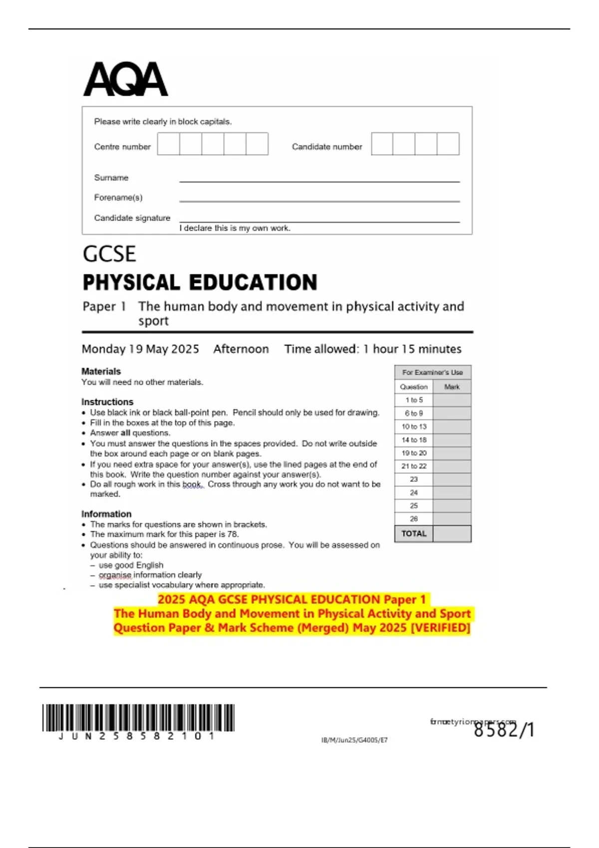 2025 AQA GCSE PHYSICAL EDUCATION Paper 1