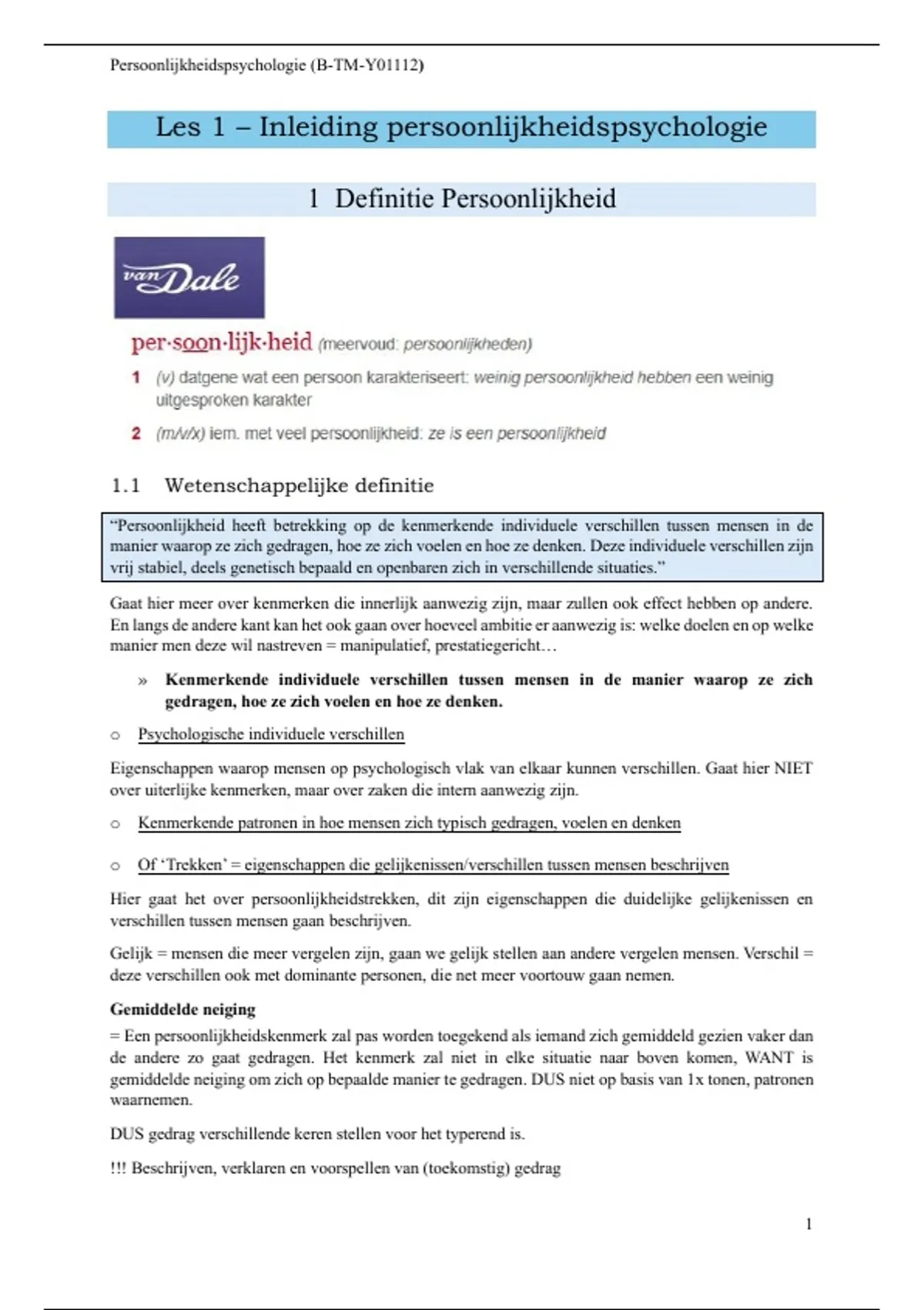 Les 1 – Inleiding persoonlijkheidspsychologie