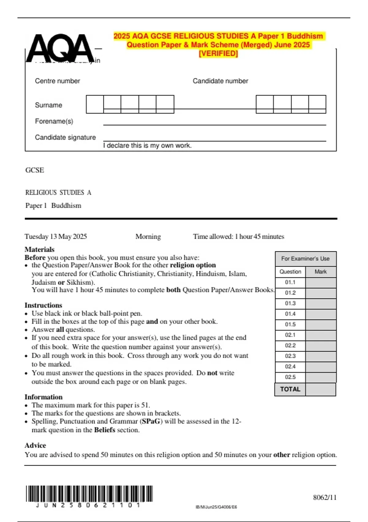 Question Paper & Mark Scheme (Merged) June 2025
