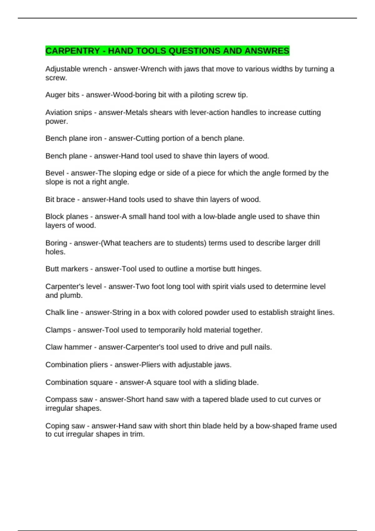 Bit brace - answer-Hand tools used to shave thin layers of wood.