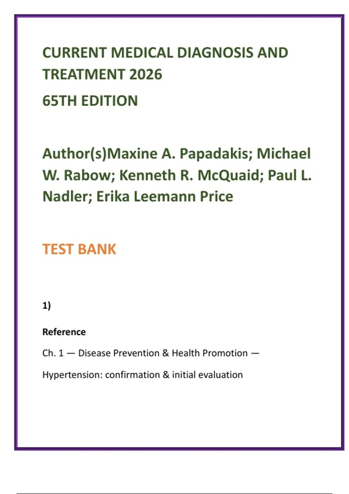 Medical Diagnosis & Treatment (65th ed.). Ch. 1.