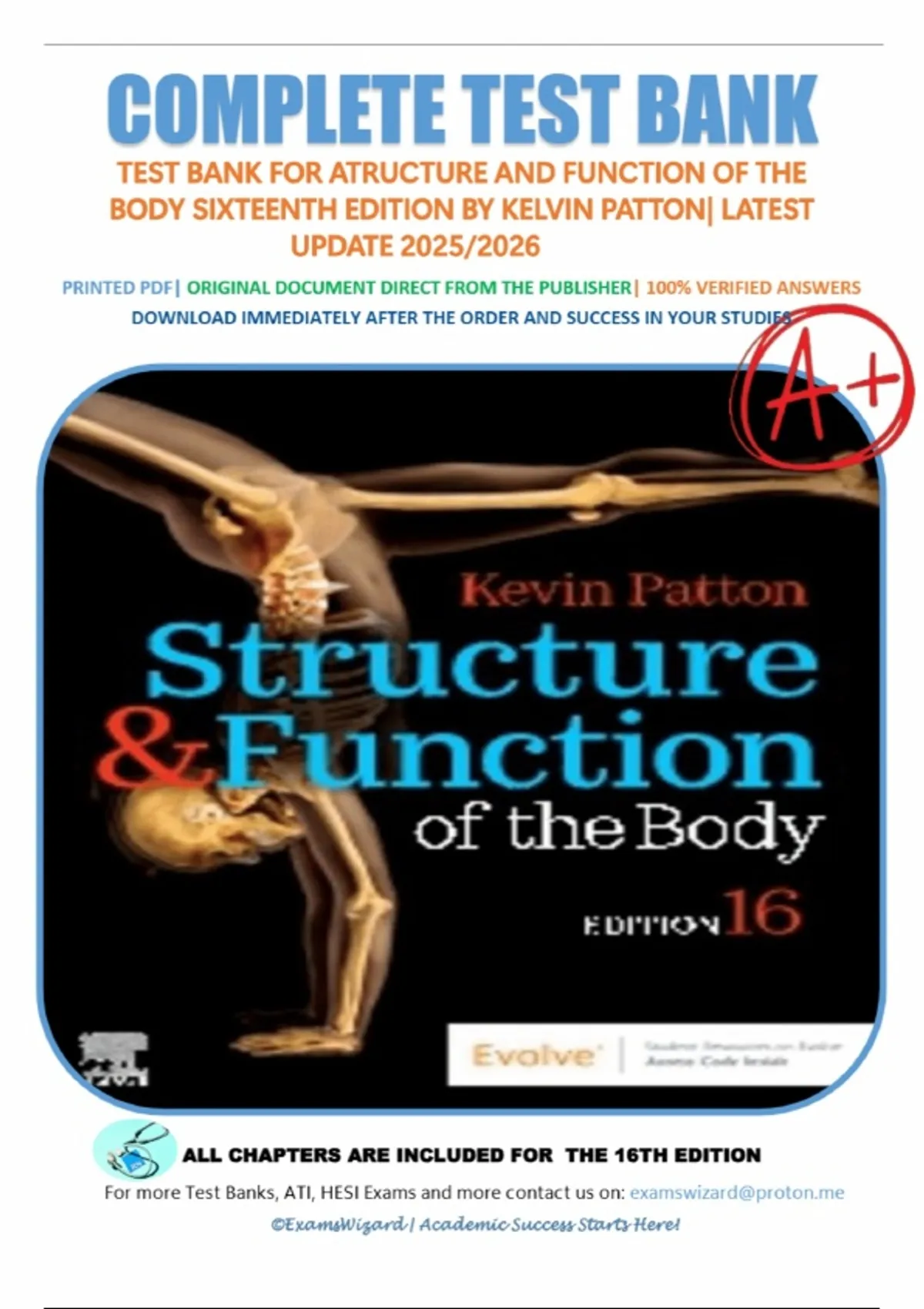 Test Bank for Structure & Function of the Body, 16th Edition by Patton & Thibodeau.|All 1-22 Chapters included, Latest update.
