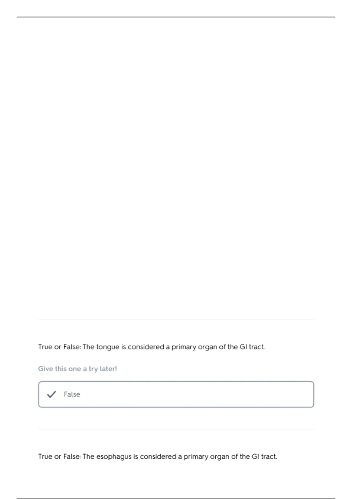 True or False: The esophagus is considered a primary organ of the GI tract.
