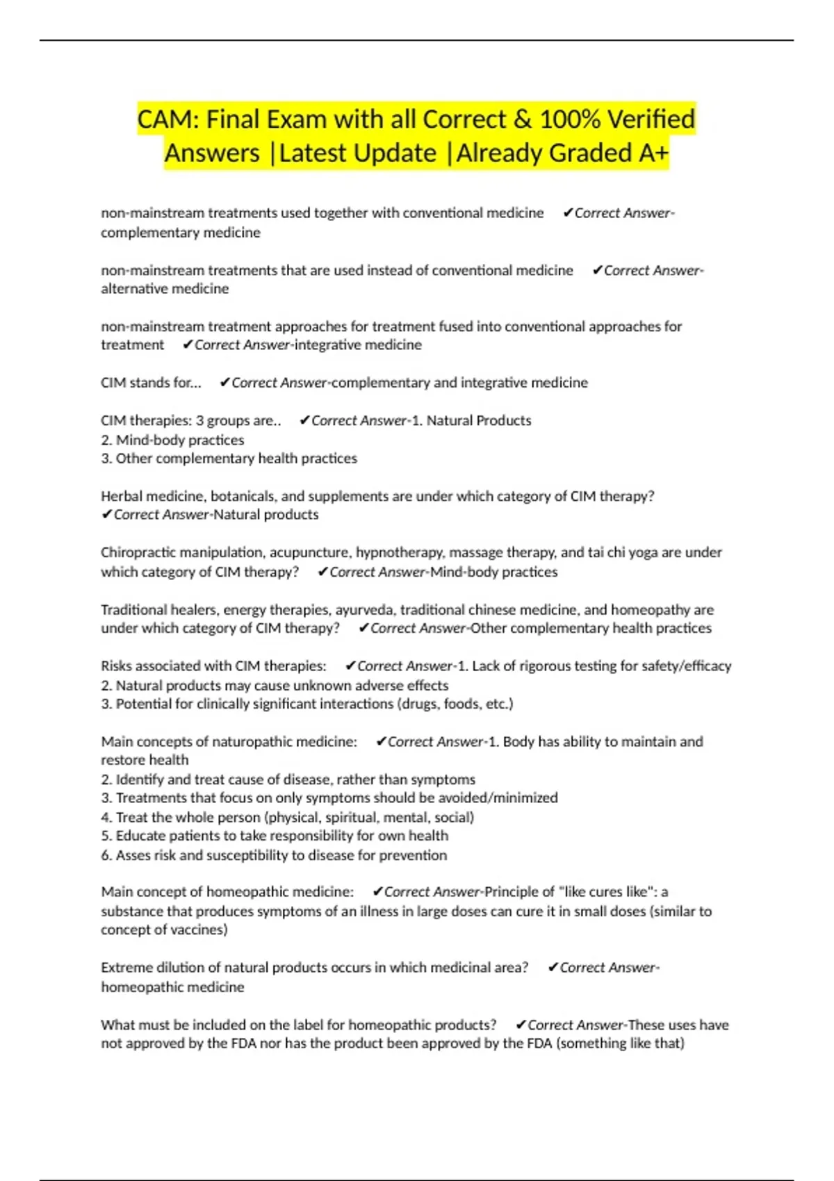CIM stands for... ✔Correct Answer-complementary and integrative medicine