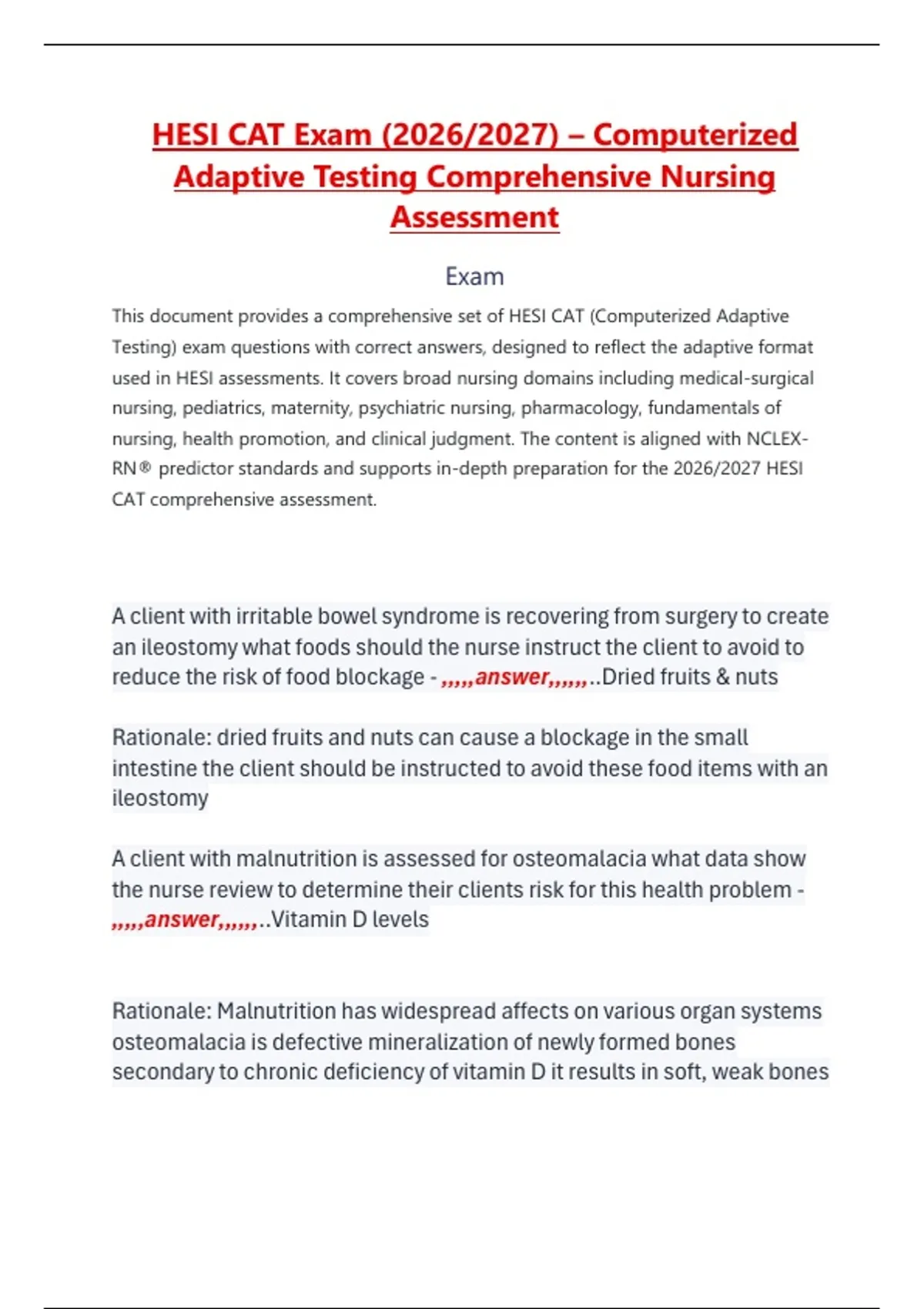 This document provides a comprehensive set of HESI CAT (Computerized Adaptive