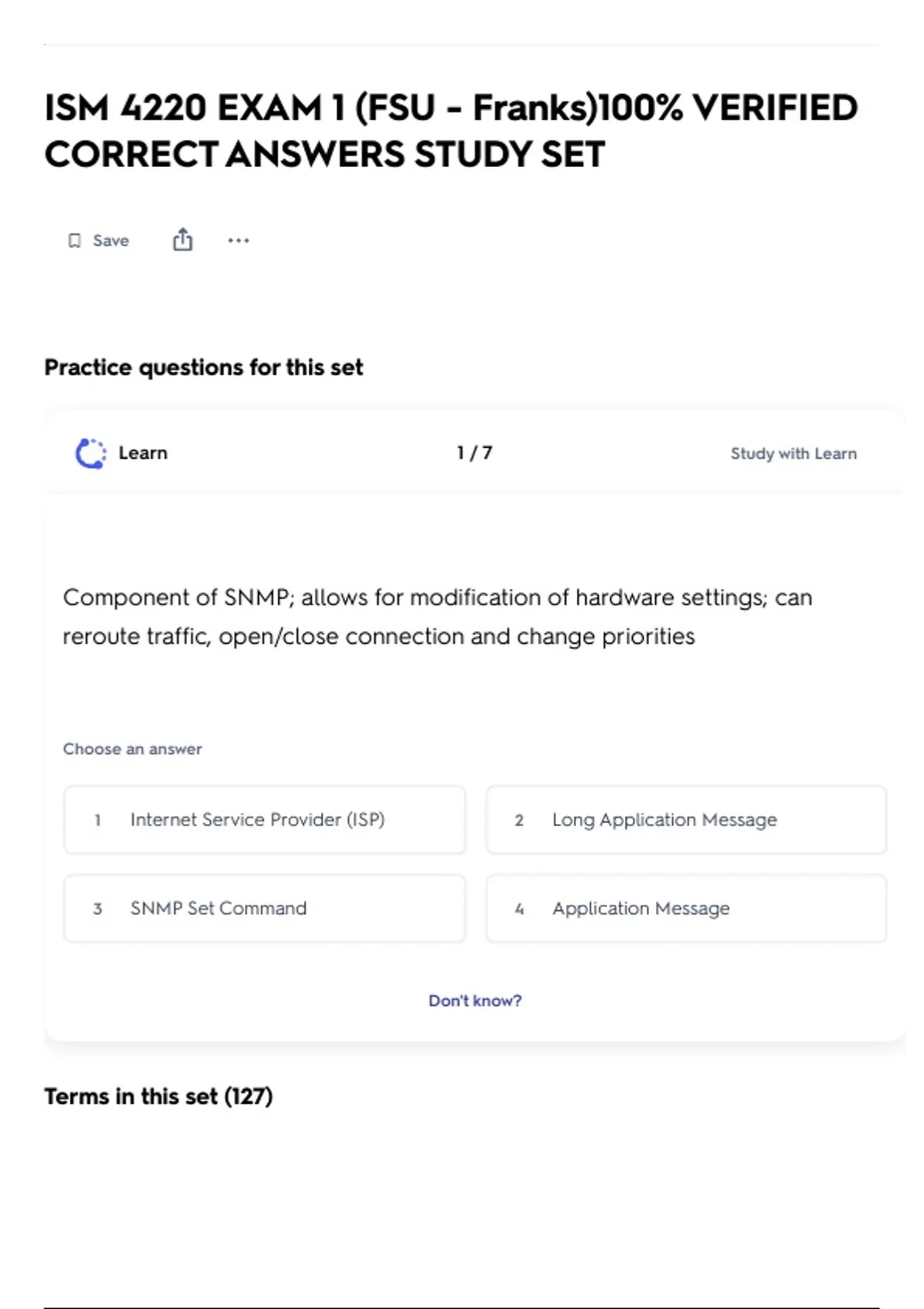 CORRECT ANSWERS STUDY SET