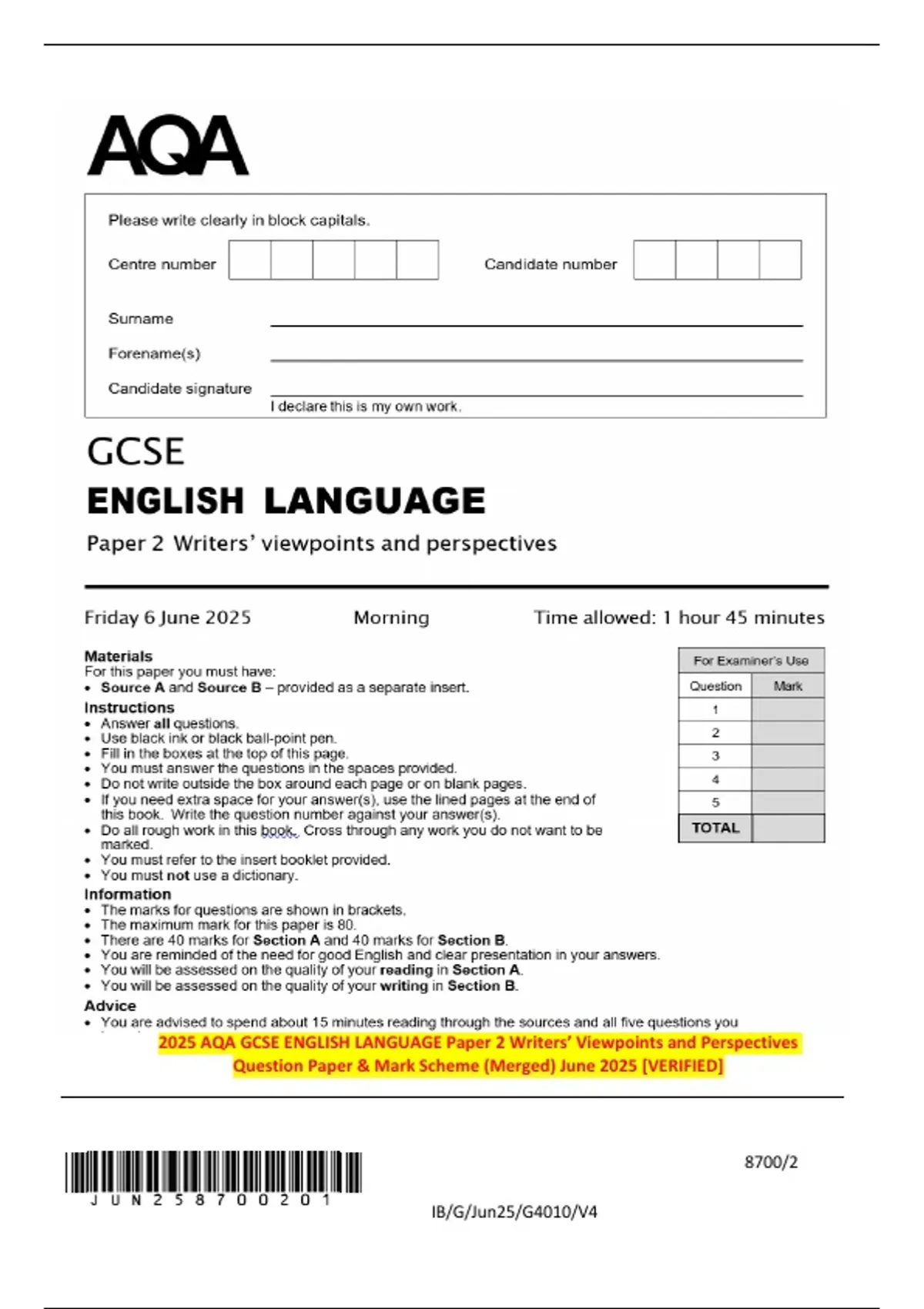 Question Paper & Mark Scheme (Merged) June 2025 [VERIFIED]