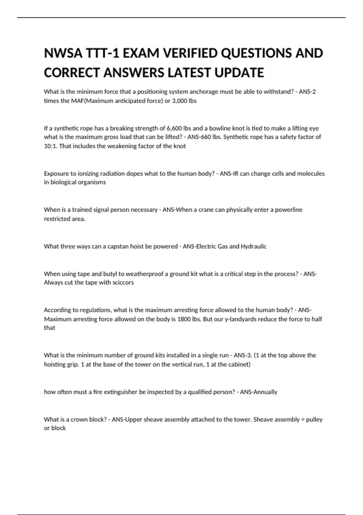 NWSA TTT-1 EXAM VERIFIED QUESTIONS AND