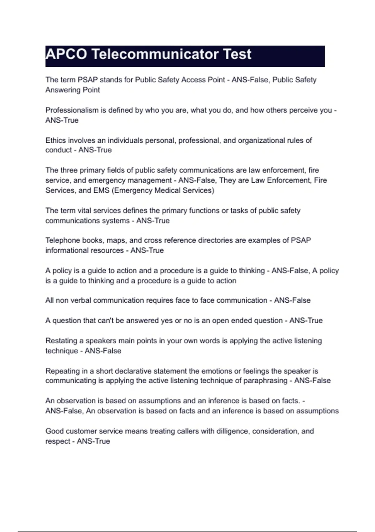 service, and emergency management - ANS-False, They are Law Enforcement, Fire