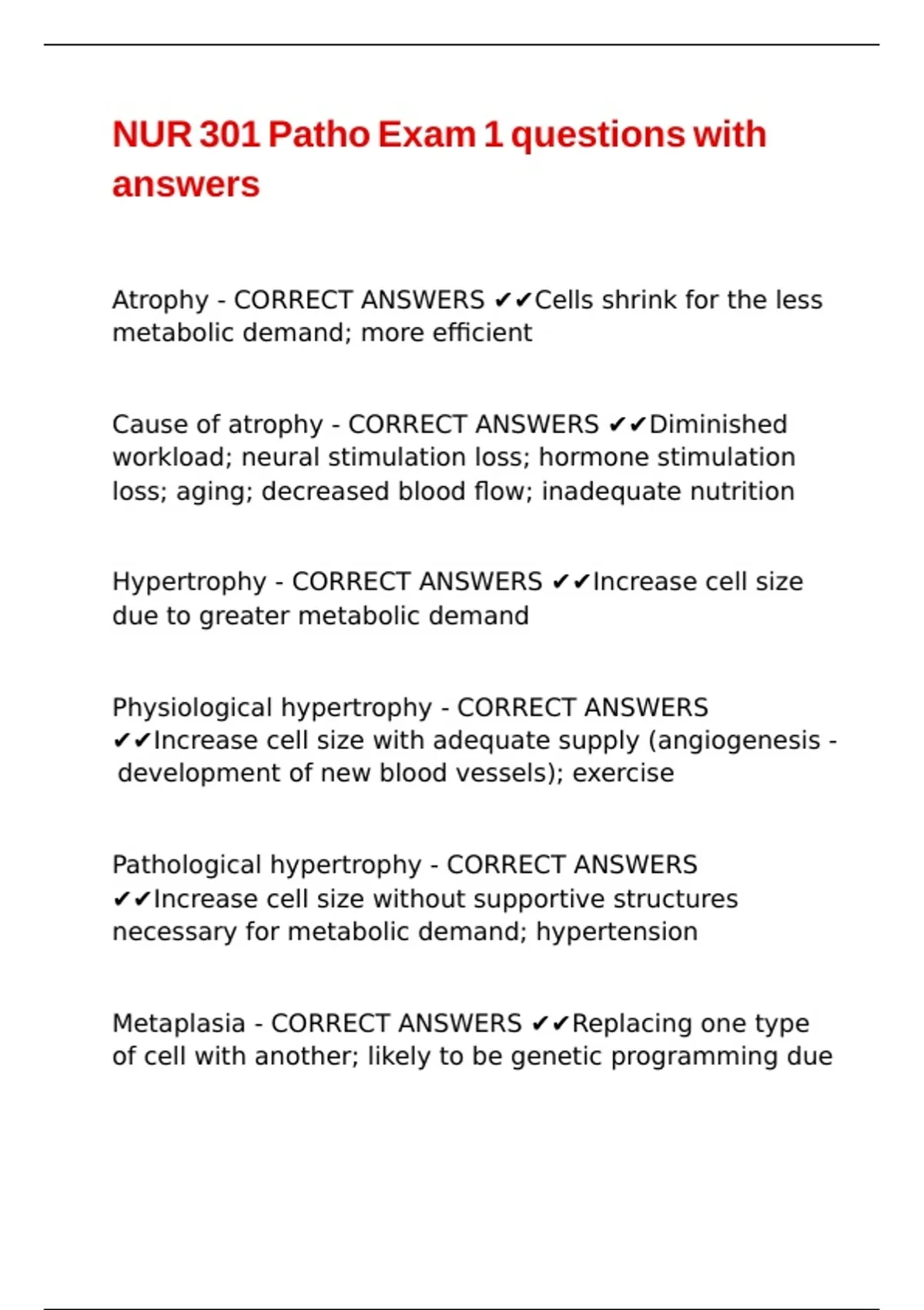 Hypertrophy - CORRECT ANSWERS ✔✔Increase cell size |\ |\ |\ |\ |\ |\ |\