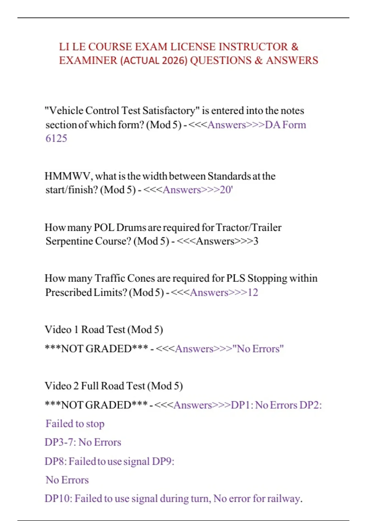 LI LE COURSE EXAM LICENSE INSTRUCTOR &