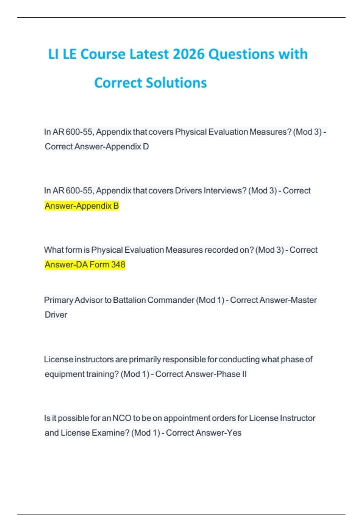 , Driver/Operator Selection Process (Mod 2) - Correct Answer-AR 600-55 | | | | | | | |