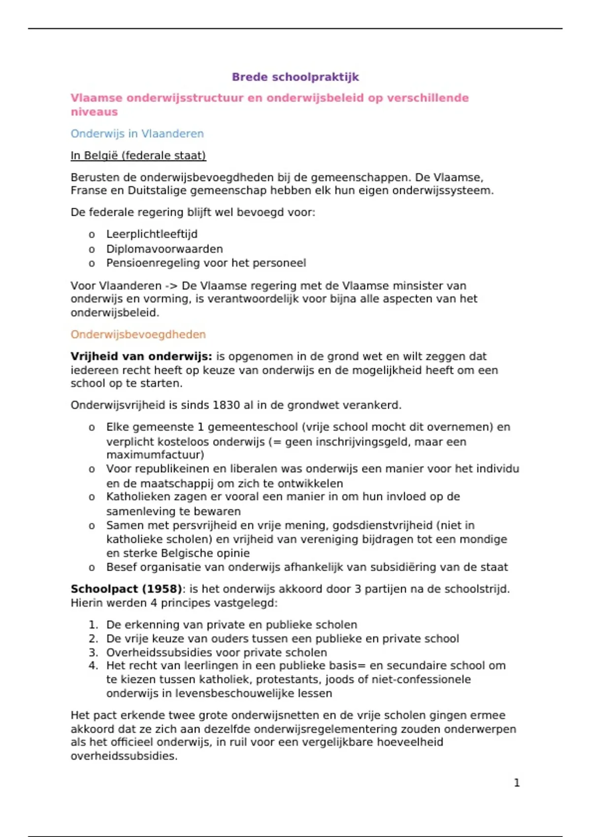 Vlaamse onderwijsstructuur en onderwijsbeleid op verschillende