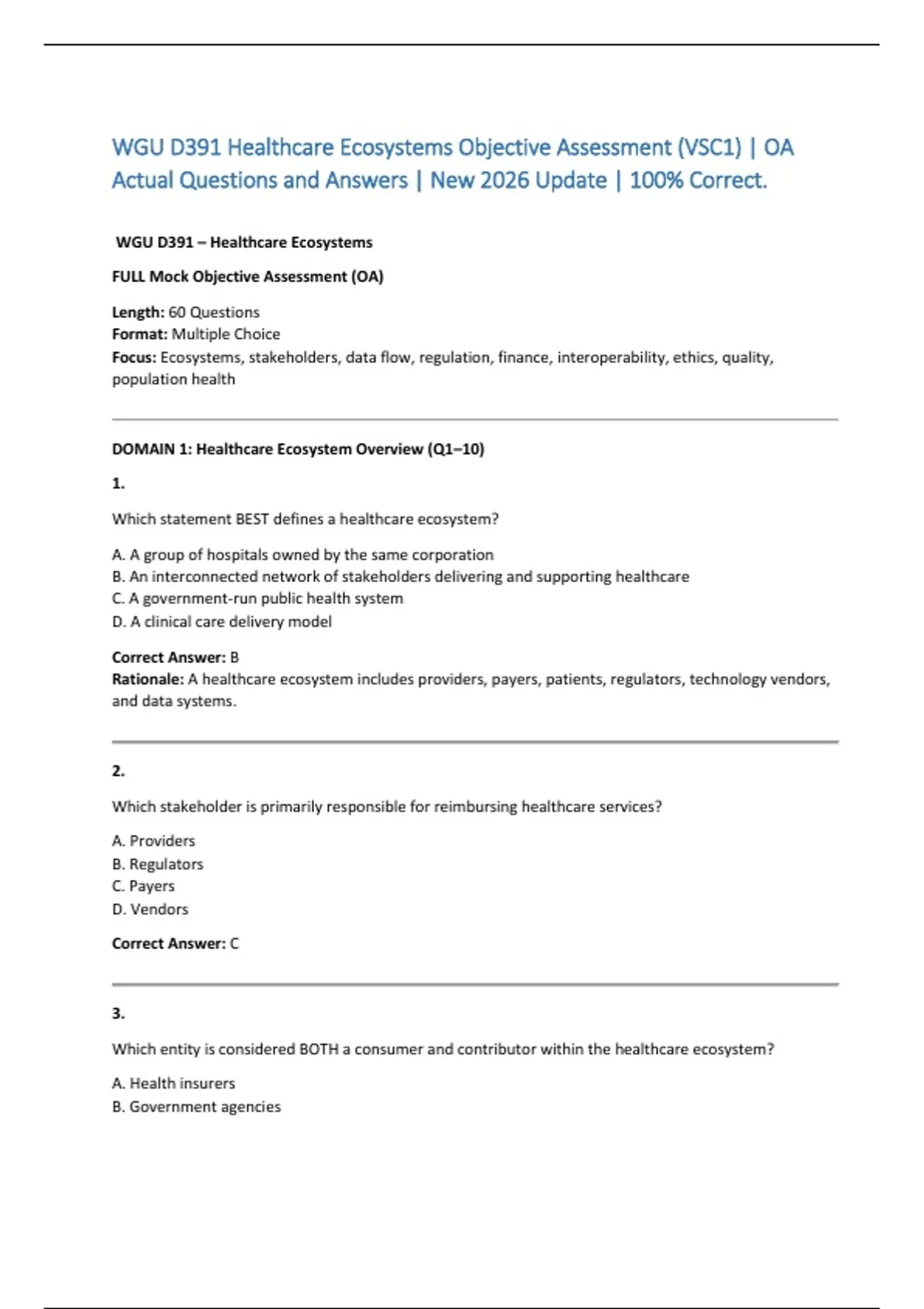 WGU D391 Healthcare Ecosystems Objective Assessment (VSC1) | OA