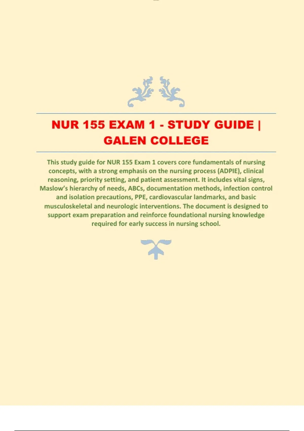 NUR 155 EXAM 1 - STUDY GUIDE | GALEN COLLEGE | LATEST UPDATE 2026/2027