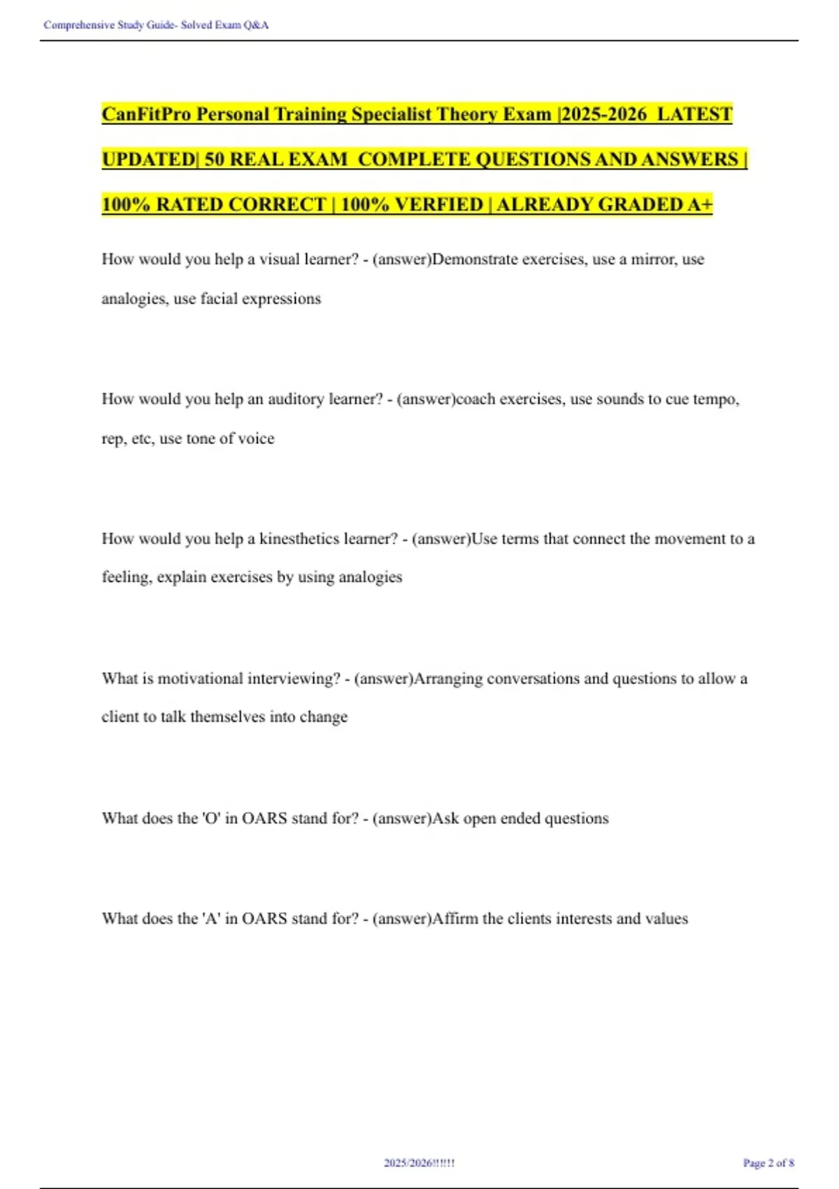 CanFitPro Personal Training Specialist Theory Exam |2025-2026 LATEST