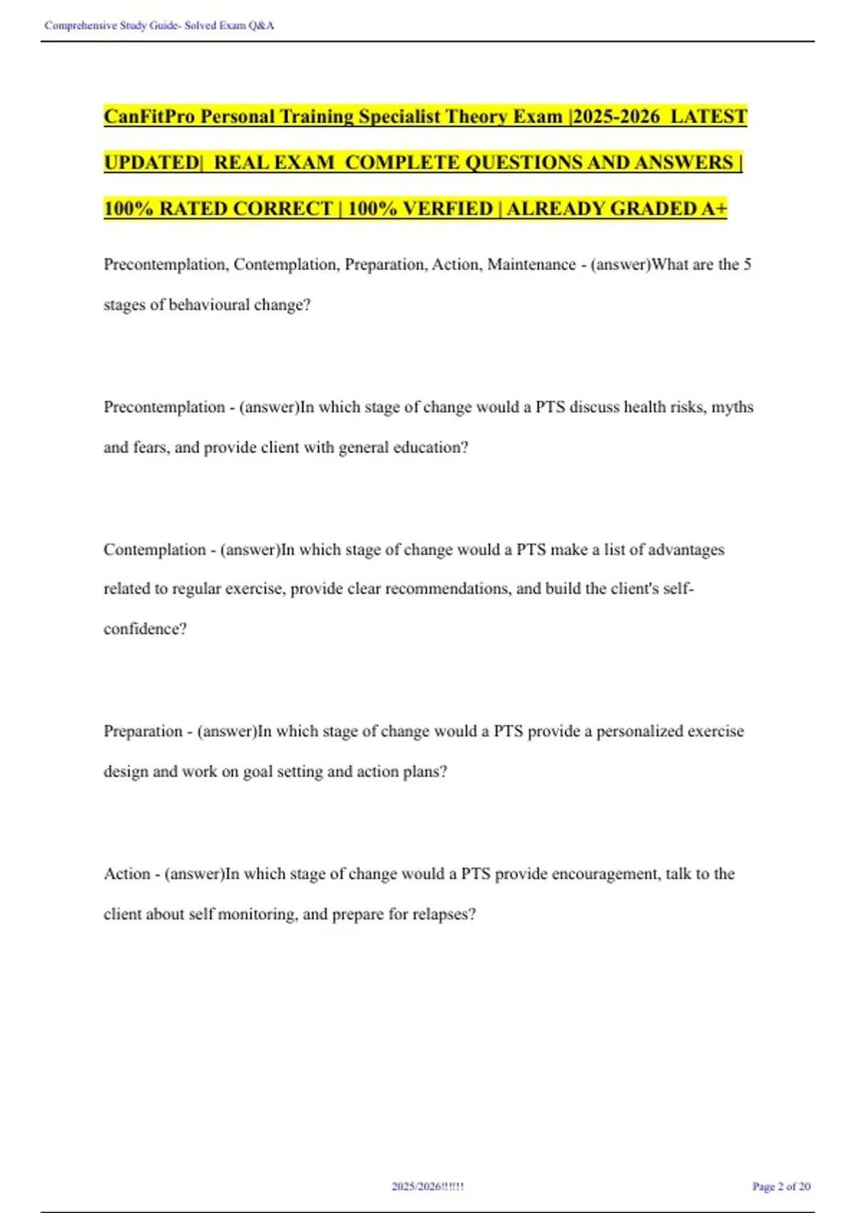 CanFitPro Personal Training Specialist Theory Exam |2025-2026 LATEST