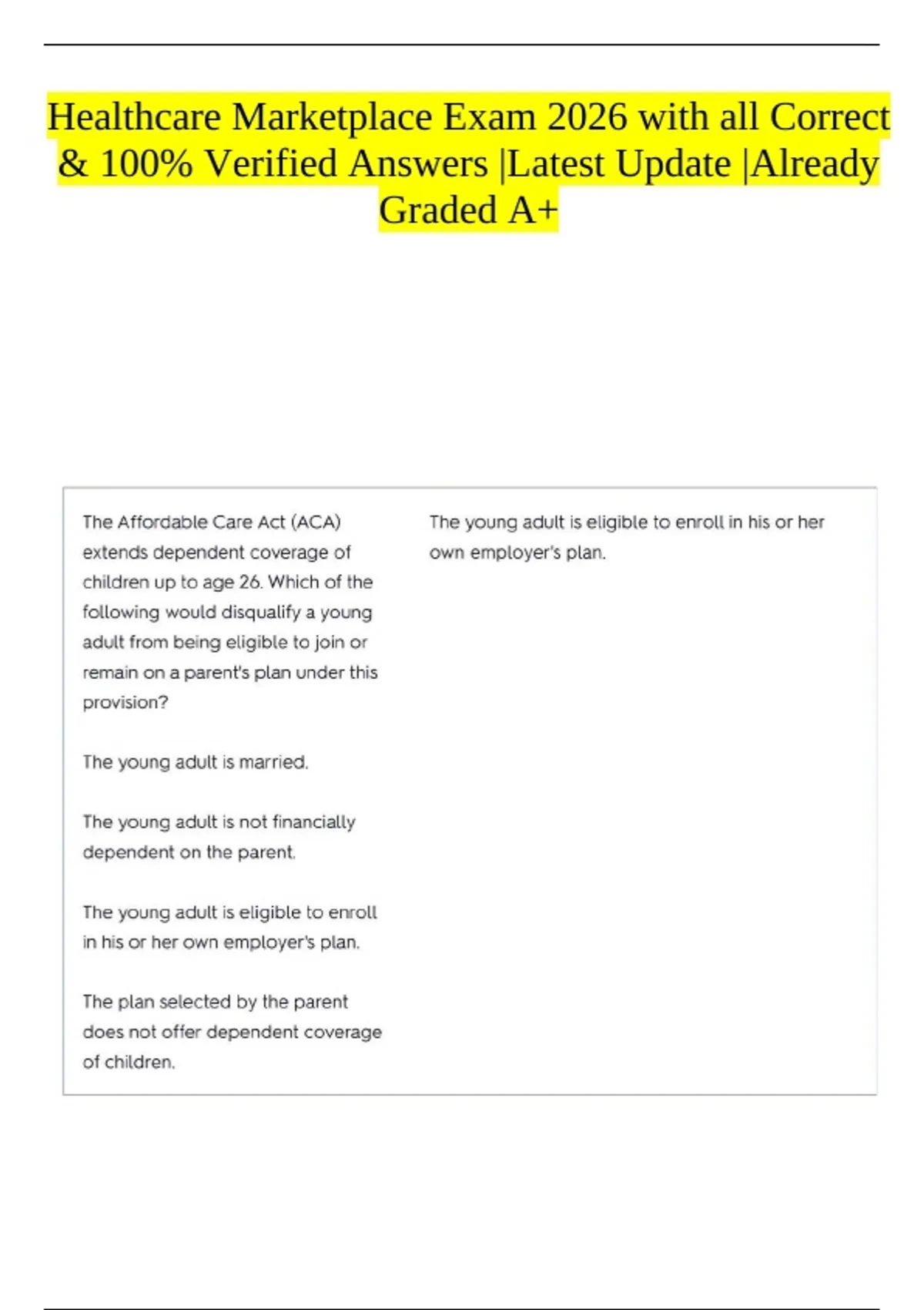 Healthcare Marketplace Exam 2026 with all Correct & 100% Verified Answers |Latest Update |Already Graded A+