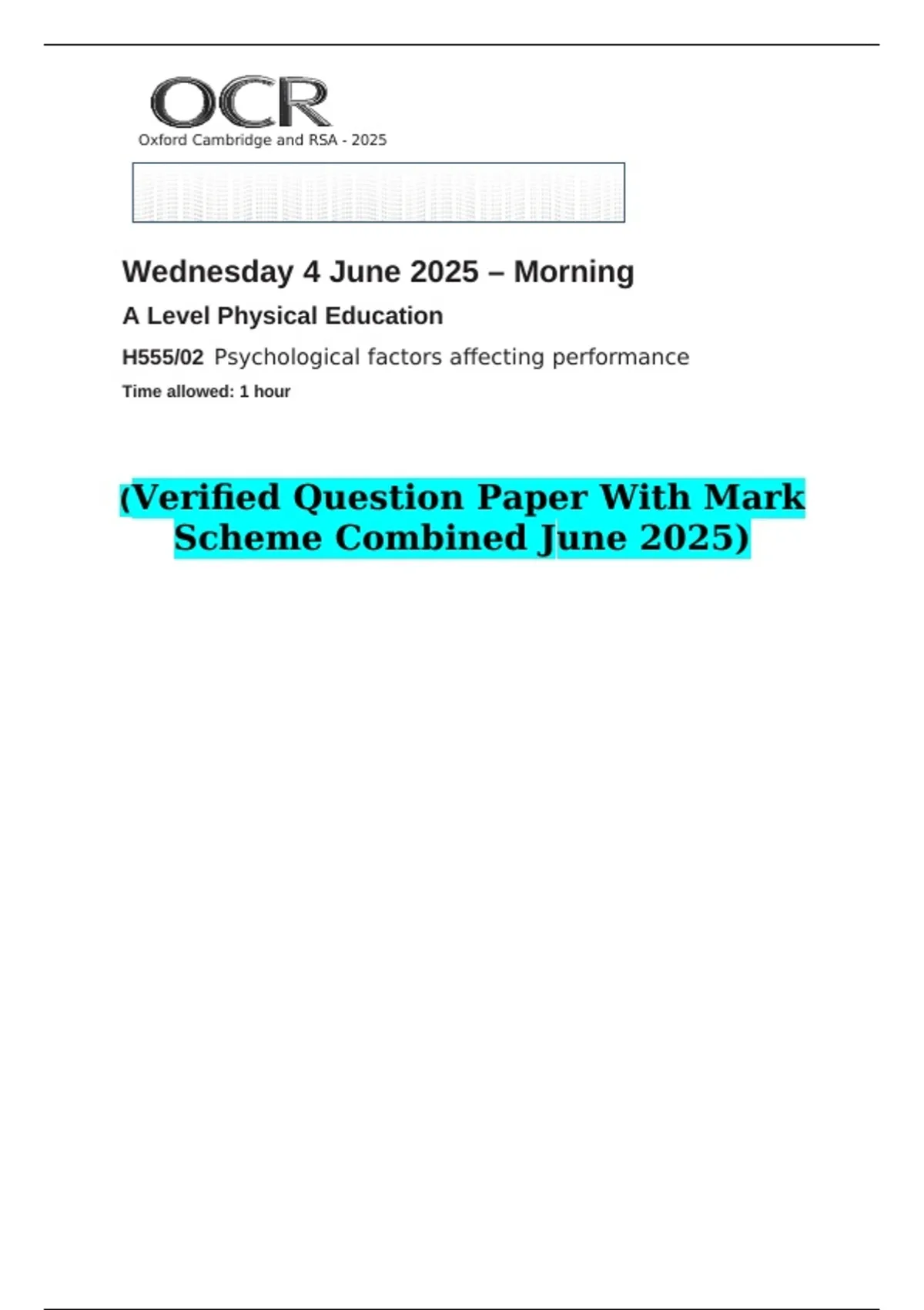 2025 A Level Physical Education H555/02 Psychological factors affecting performance (Verified Question Paper With Mark Scheme Combined June 2025)