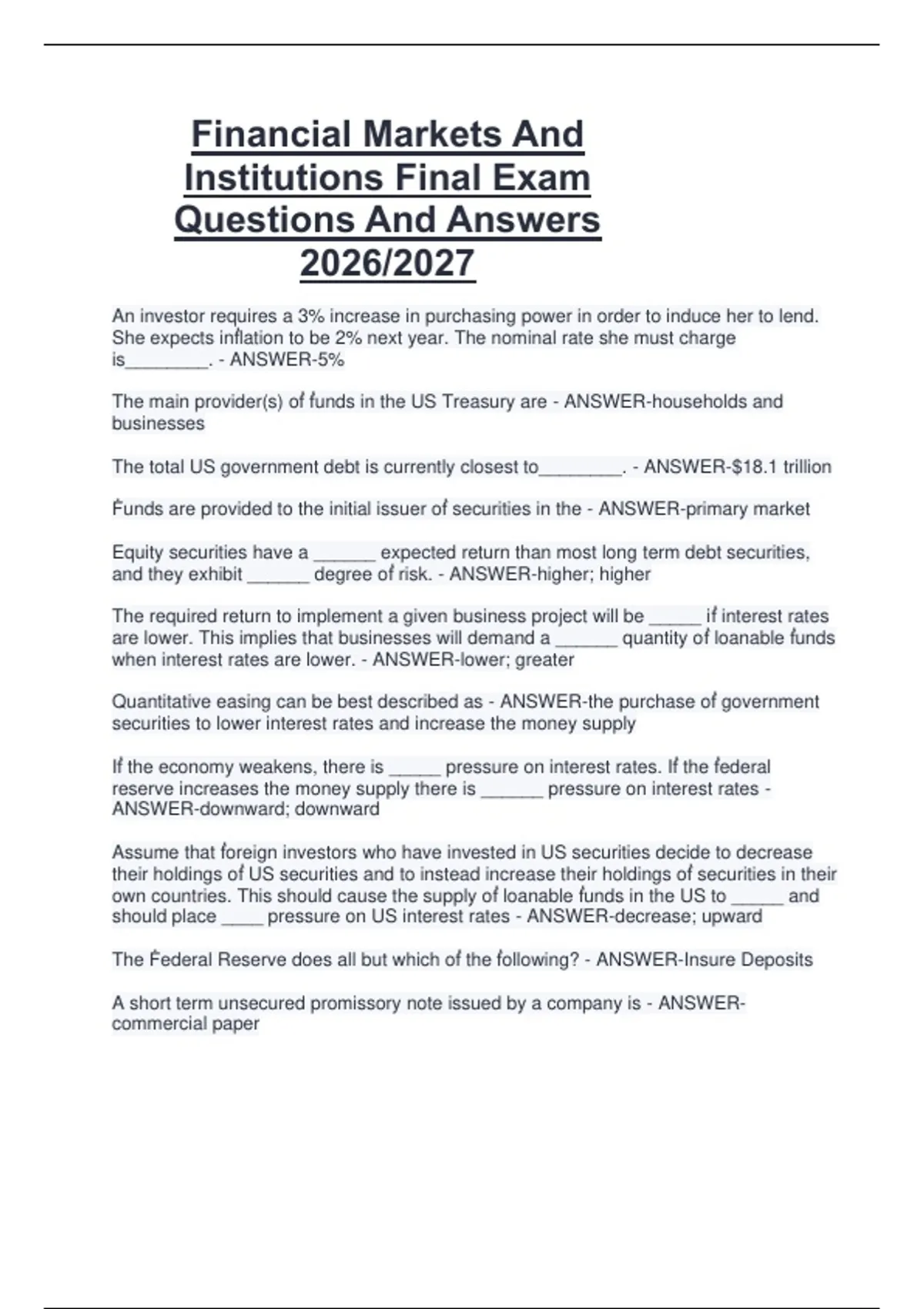 Institutions Final Exam