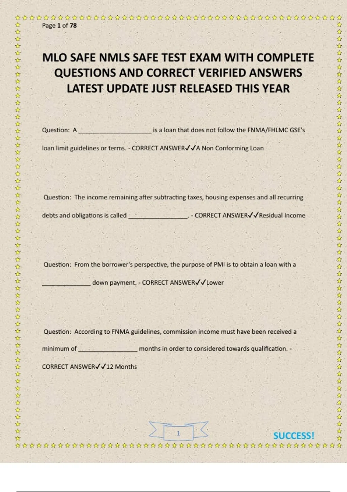 MLO SAFE NMLS SAFE TEST EXAM WITH COMPLETE