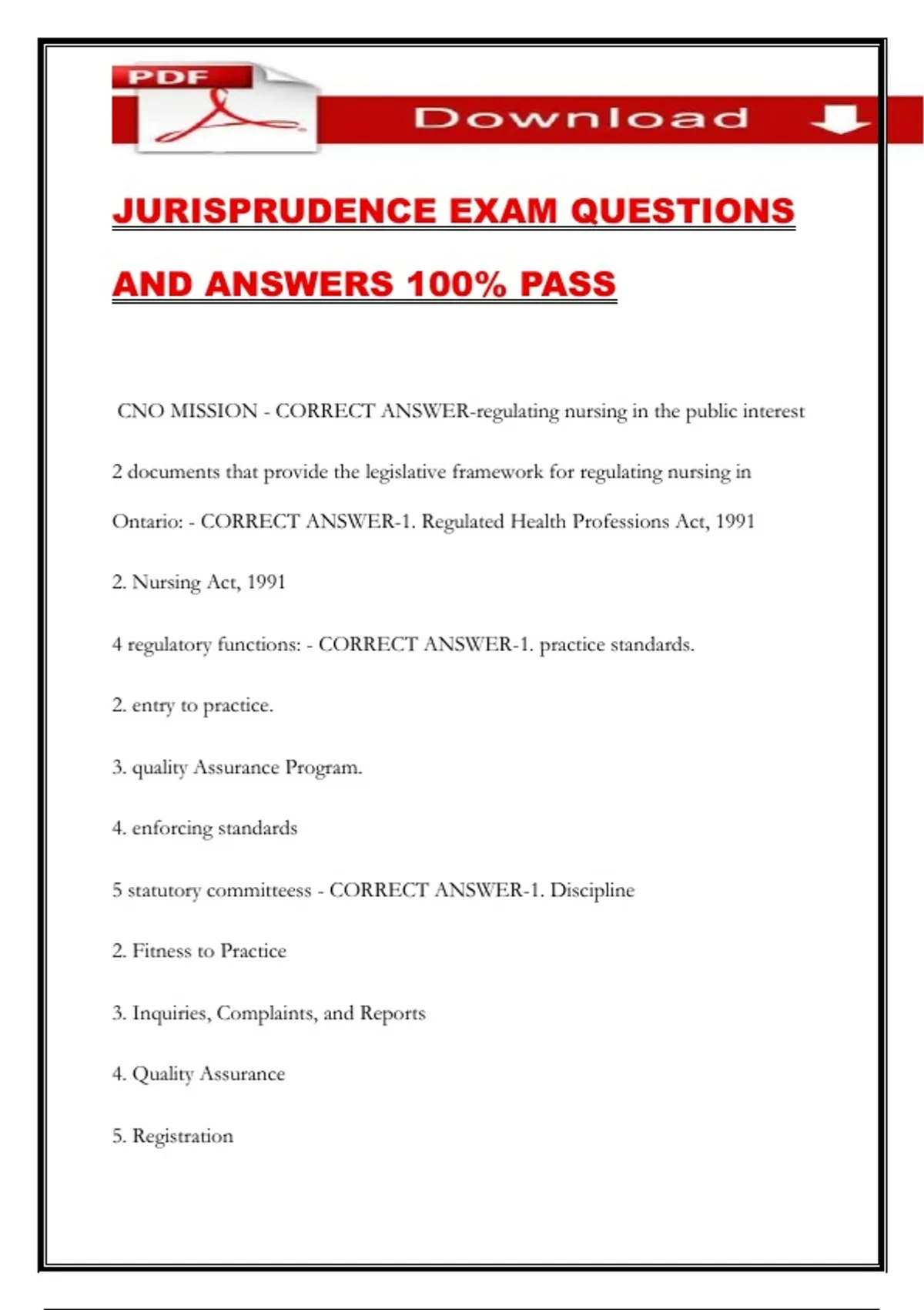 Ontario: - CORRECT ANSWER-1. Regulated Health Professions Act, 1991