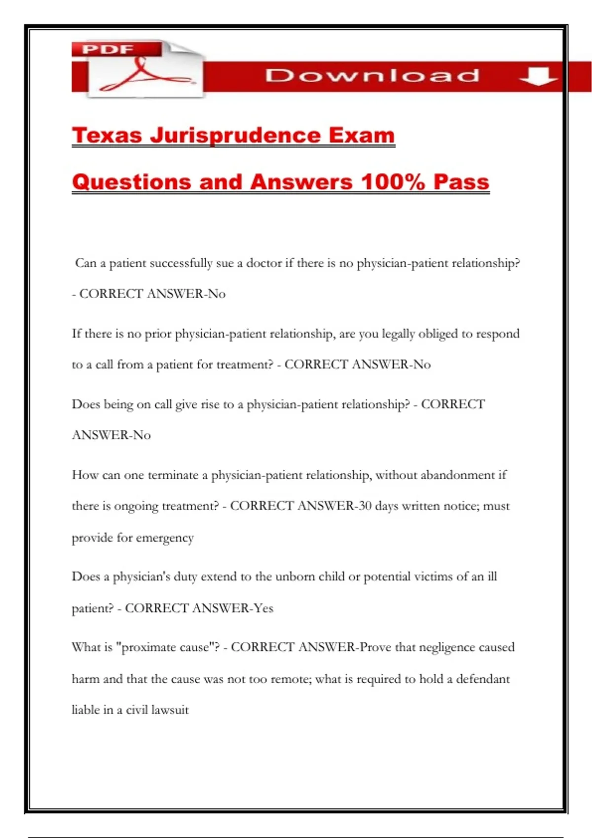Texas Jurisprudence Exam Questions and Answers 100% Pass