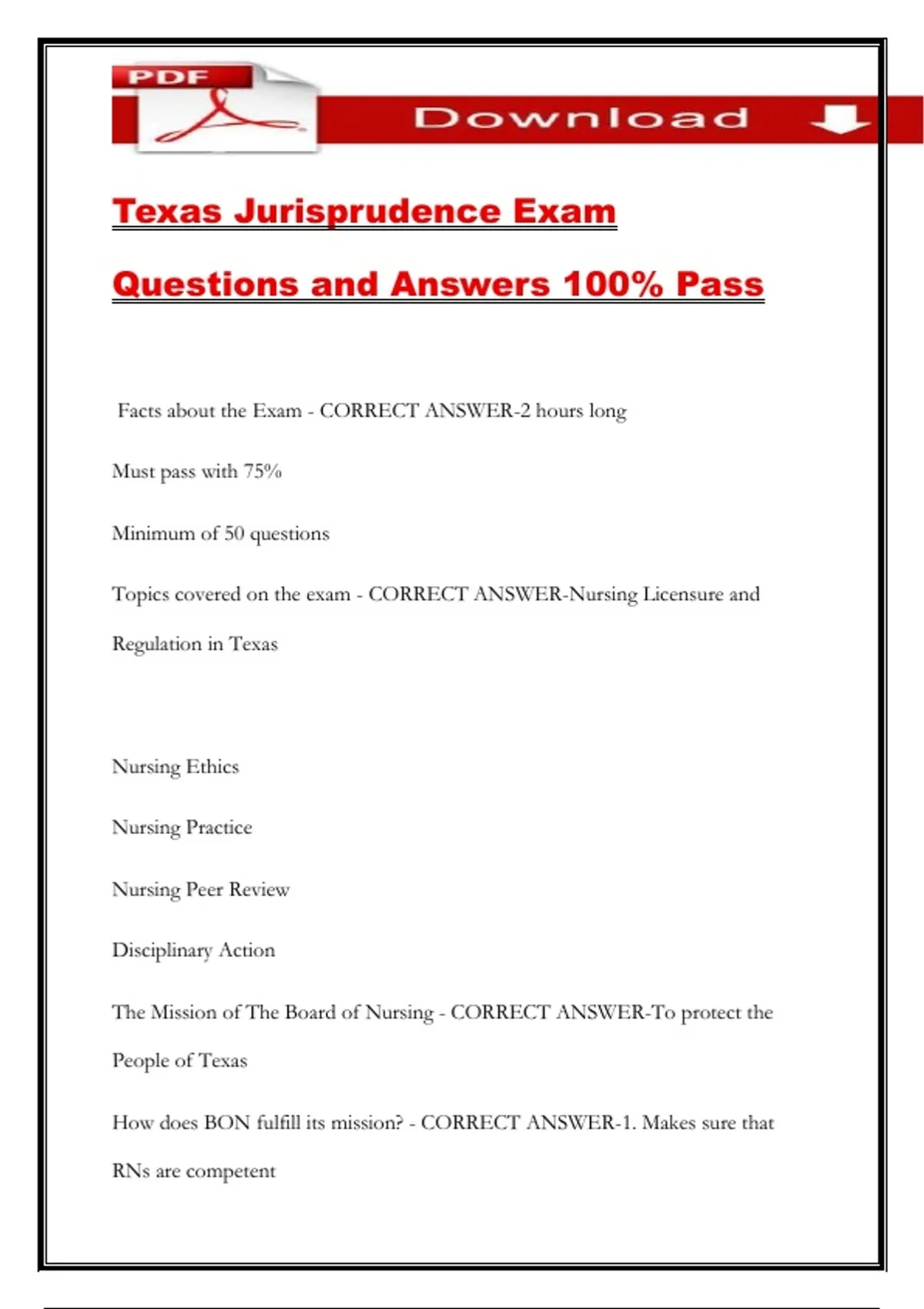 Texas Jurisprudence Exam Questions and Answers 100% Pass