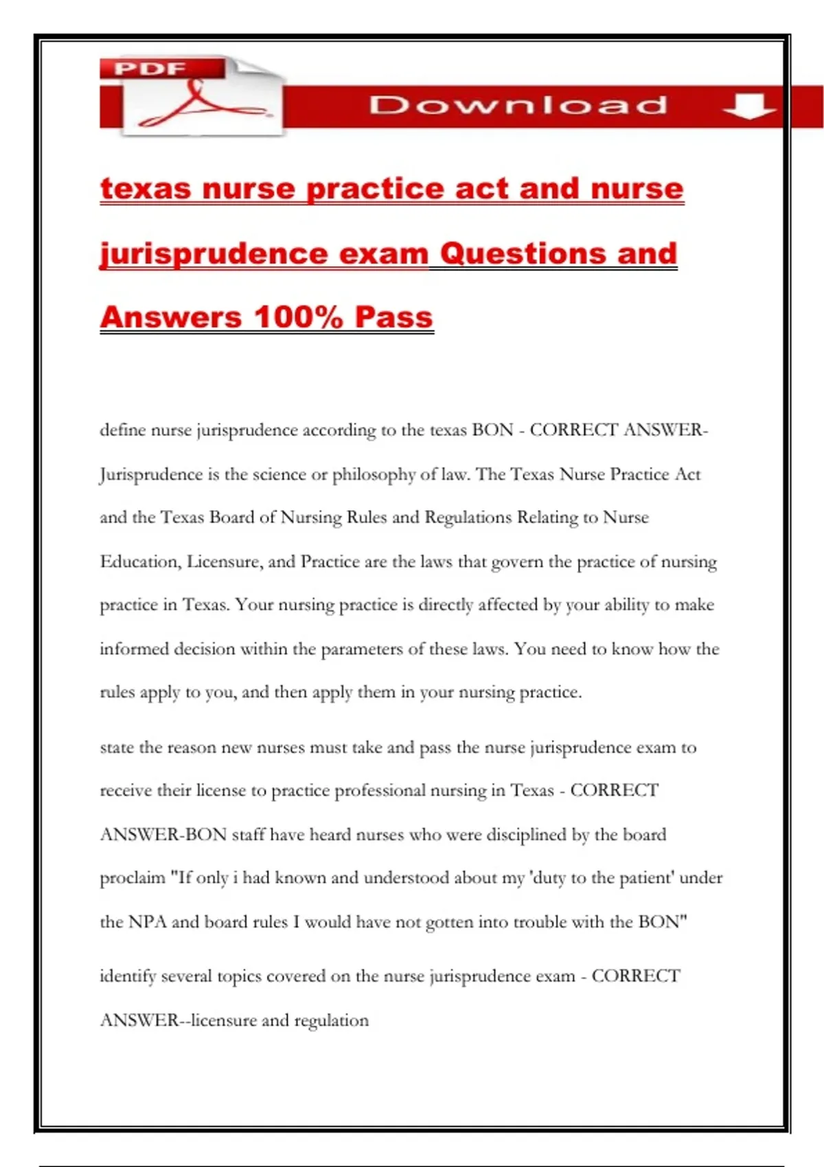 define nurse jurisprudence according to the texas BON - CORRECT ANSWER-