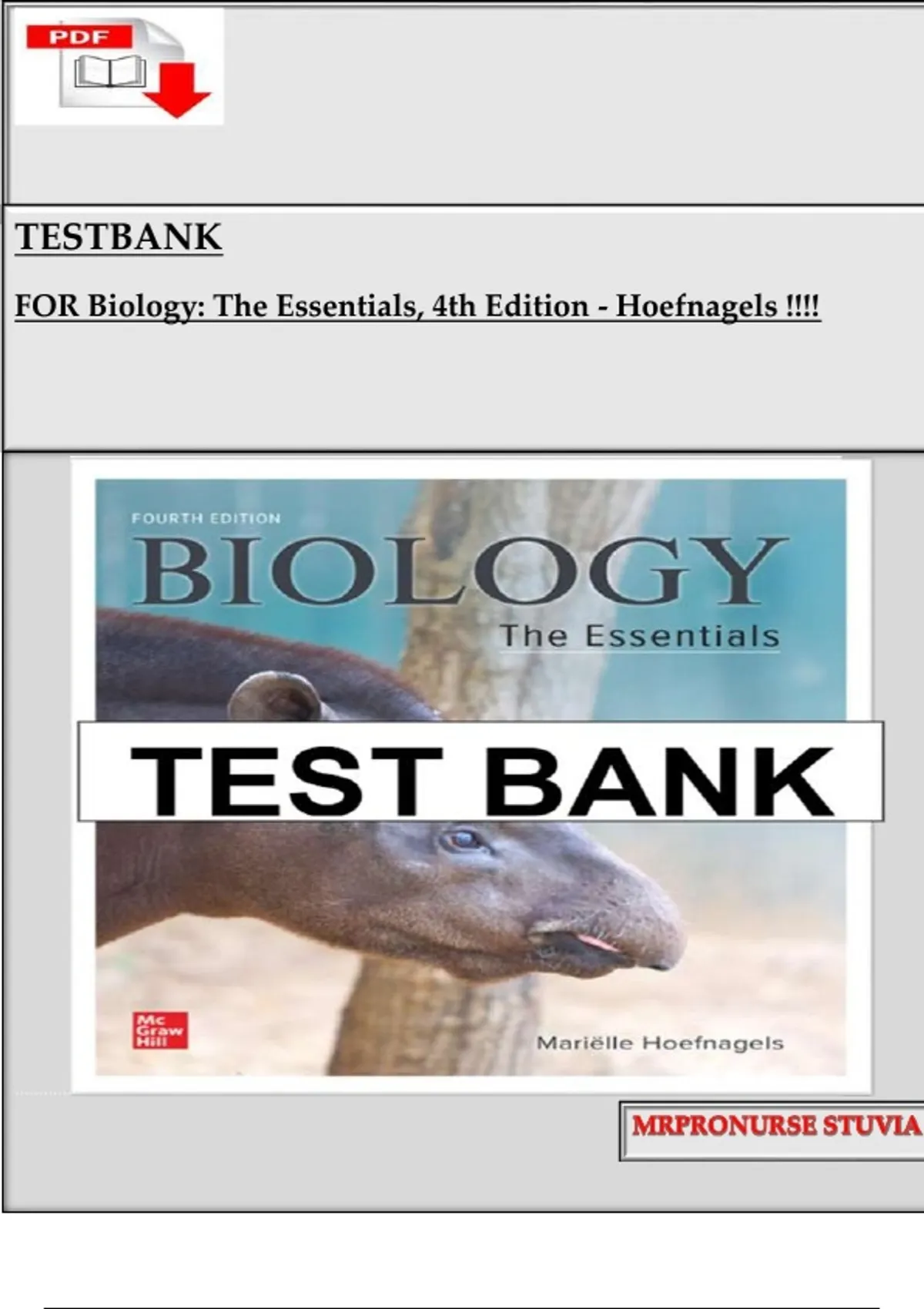 Enhance your study sessions with the **Biology The Essentials, 4th Edition by Marielle Hoefnagels Test Bank**—a comprehensive collection of exam-style questions designed to support both students and instructors. This test bank includes multiple-choice, true/false, and short answer questions that align perfectly with the 4th edition textbook by Marielle Hoefnagels. Covering foundational biology topics such as cellular processes, genetics, evolution, and ecology, this resource is ideal for quiz creation, exam preparation, and reinforcing key concepts. Whether you’re aiming to deepen your understanding or develop effective assessments, this test bank offers a reliable, structured way to master essential biology content and excel academically. Biology The Essentials 4th edition test bank, Biology The Essentials test bank Hoefnagels 4e, Marielle Hoefnagels Biology test bank 4th edition, Biology The Essentials test questions 4th edition, Biology The Essentials 4e exam prep test bank, Hoefnagels Biology The Essentials question bank 4th edition, Biology The Essentials study guide 4th edition test bank, Biology The Essentials 4th edition quiz bank, Biology The Essentials test bank PDF 4e, Marielle Hoefnagels 4th edition Biology test bank