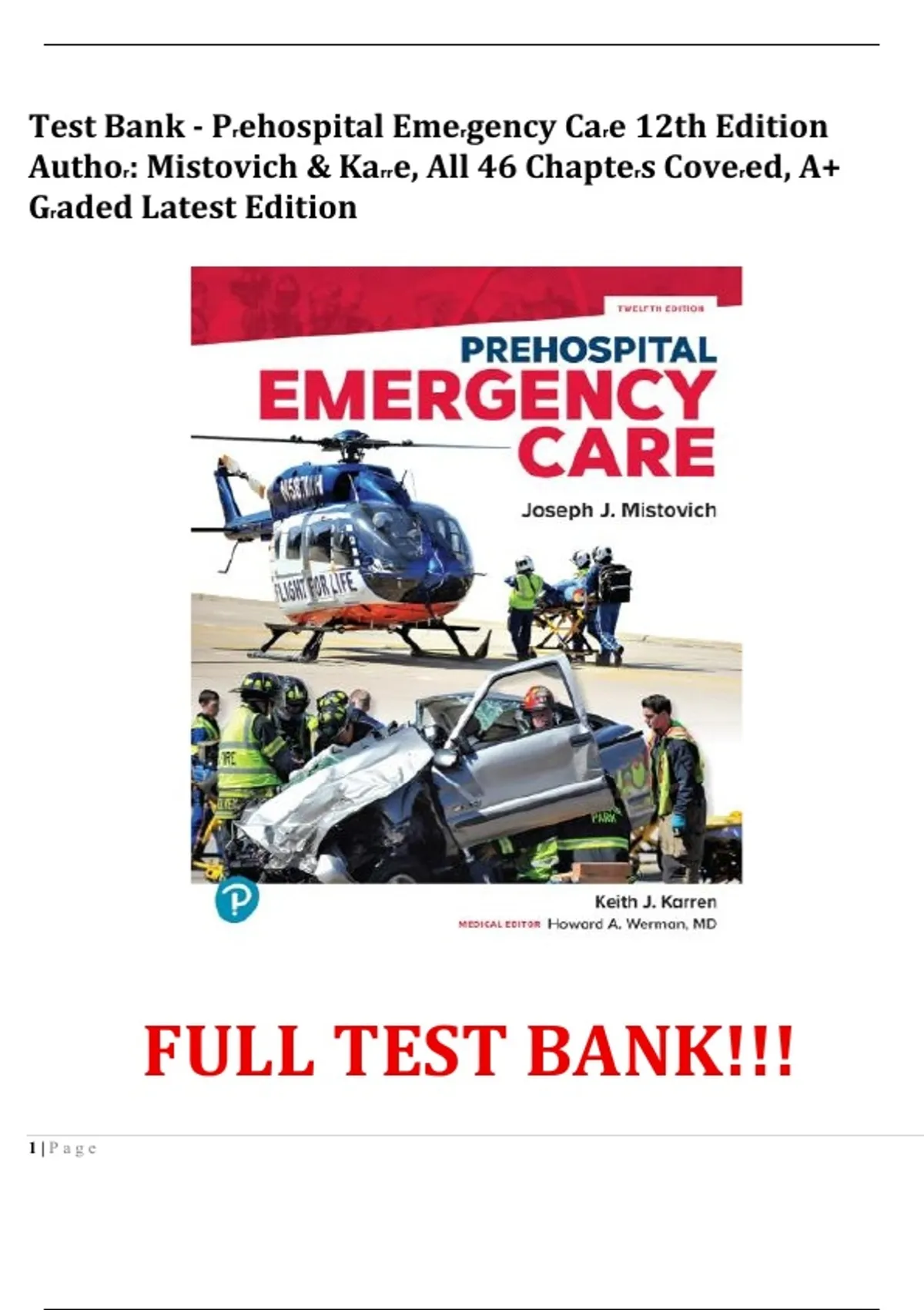 Test Bank - Prehospital Emergency Care 12th Edition Author: Mistovich & Karre, All 46 Chapters Covered, A+ Graded Latest Edition