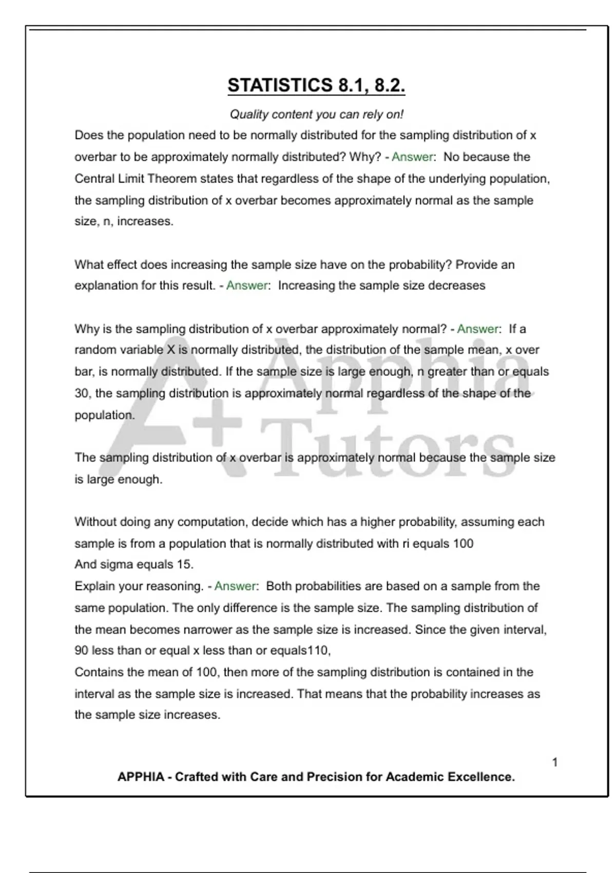 STATISTICS 8.1, 8.2. Quality content you can rely on!