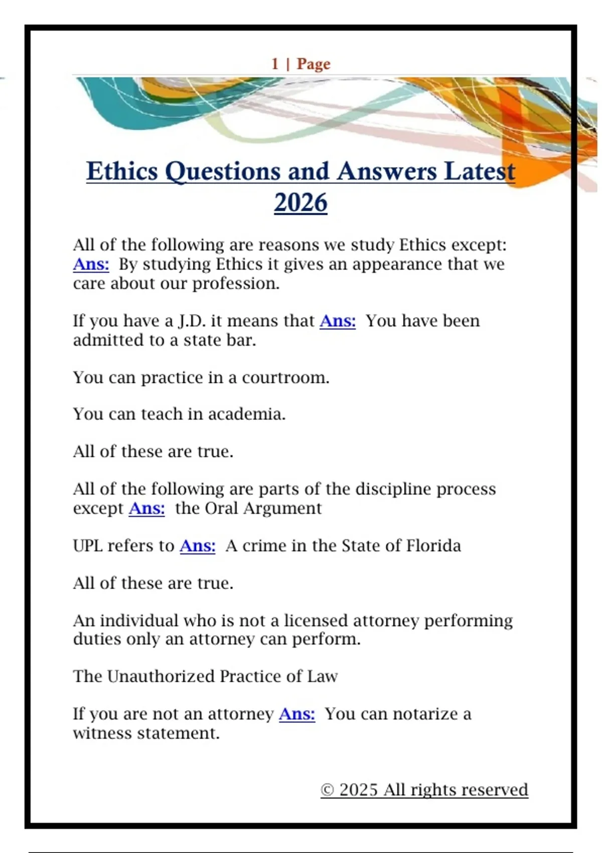 Ethics Questions and Answers Latest