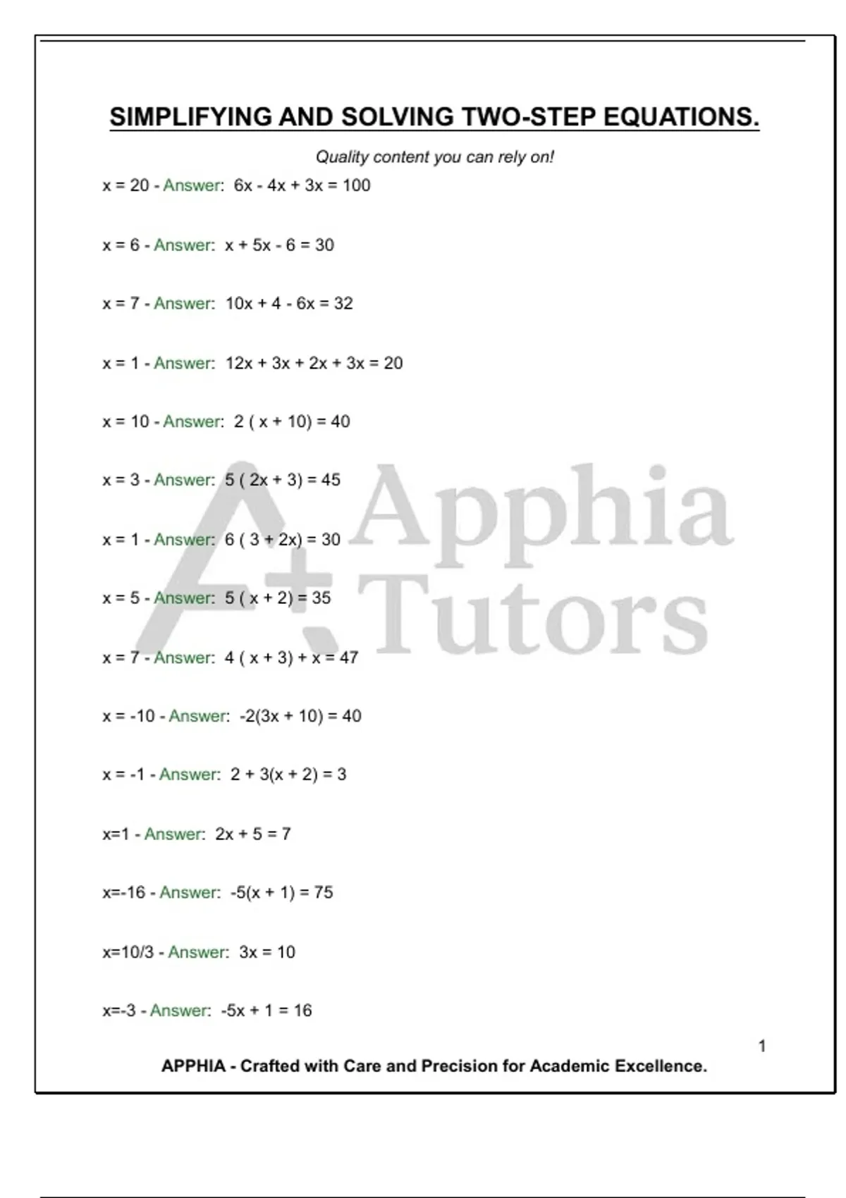 SIMPLIFYING AND SOLVING TWO-STEP EQUATIONS. Quality content you can rely on!