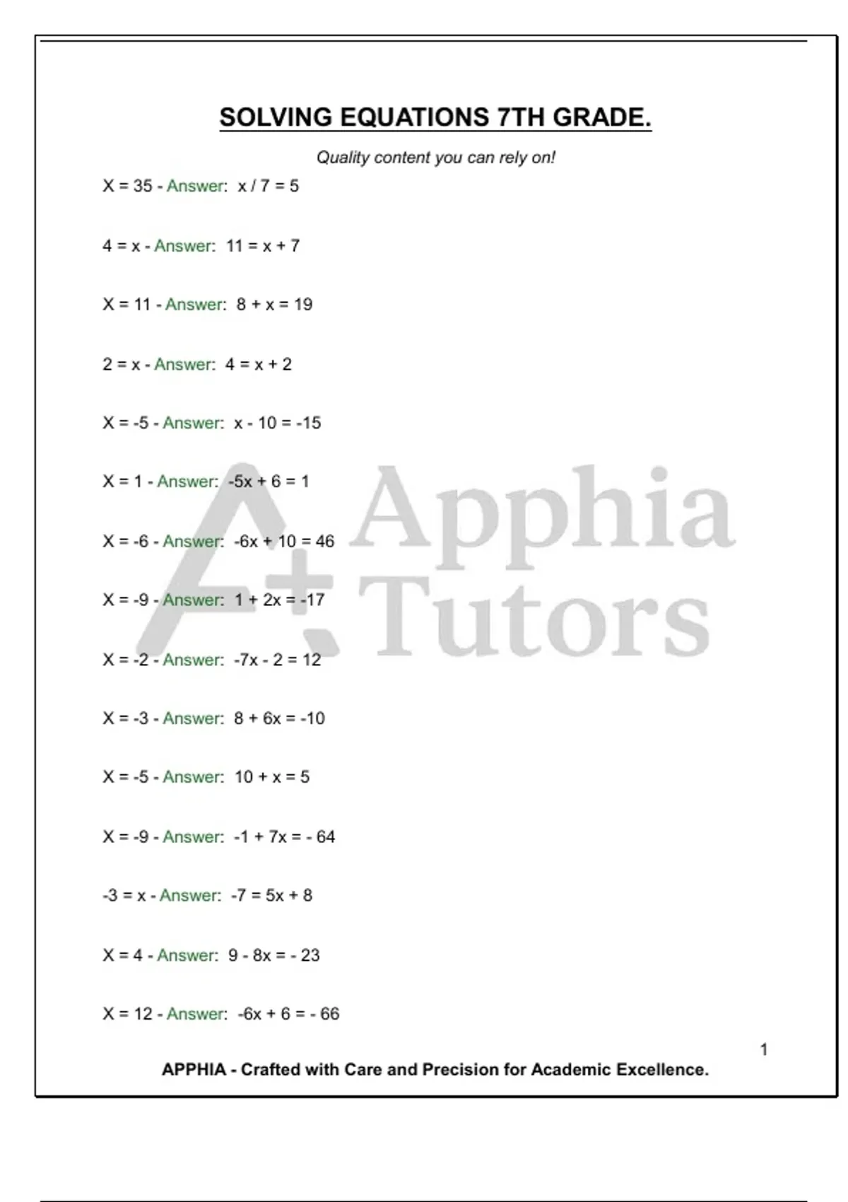 SOLVING EQUATIONS 7TH GRADE. Quality content you can rely on!