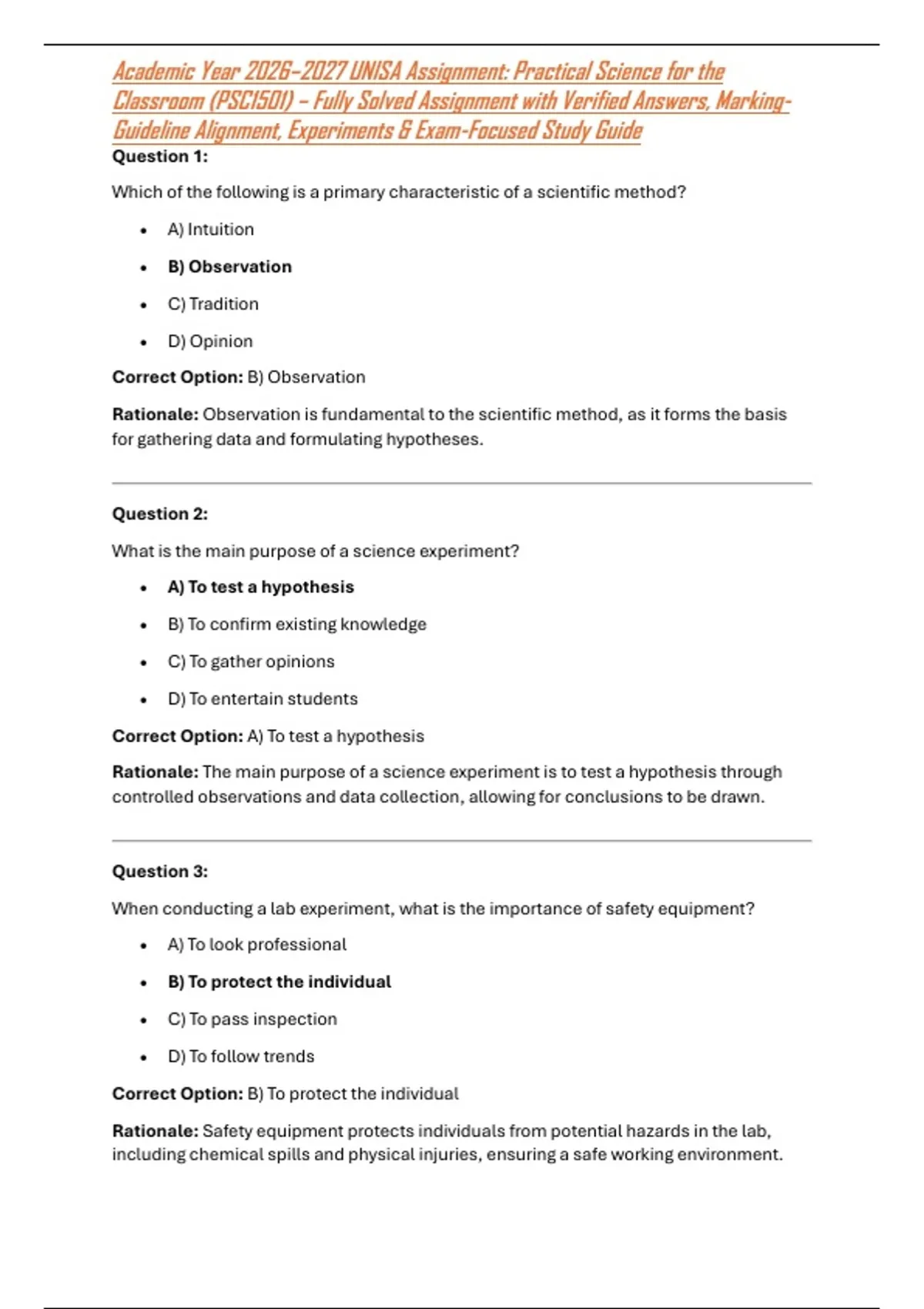 Rationale: The main purpose of a science experiment is to test a hypothesis through