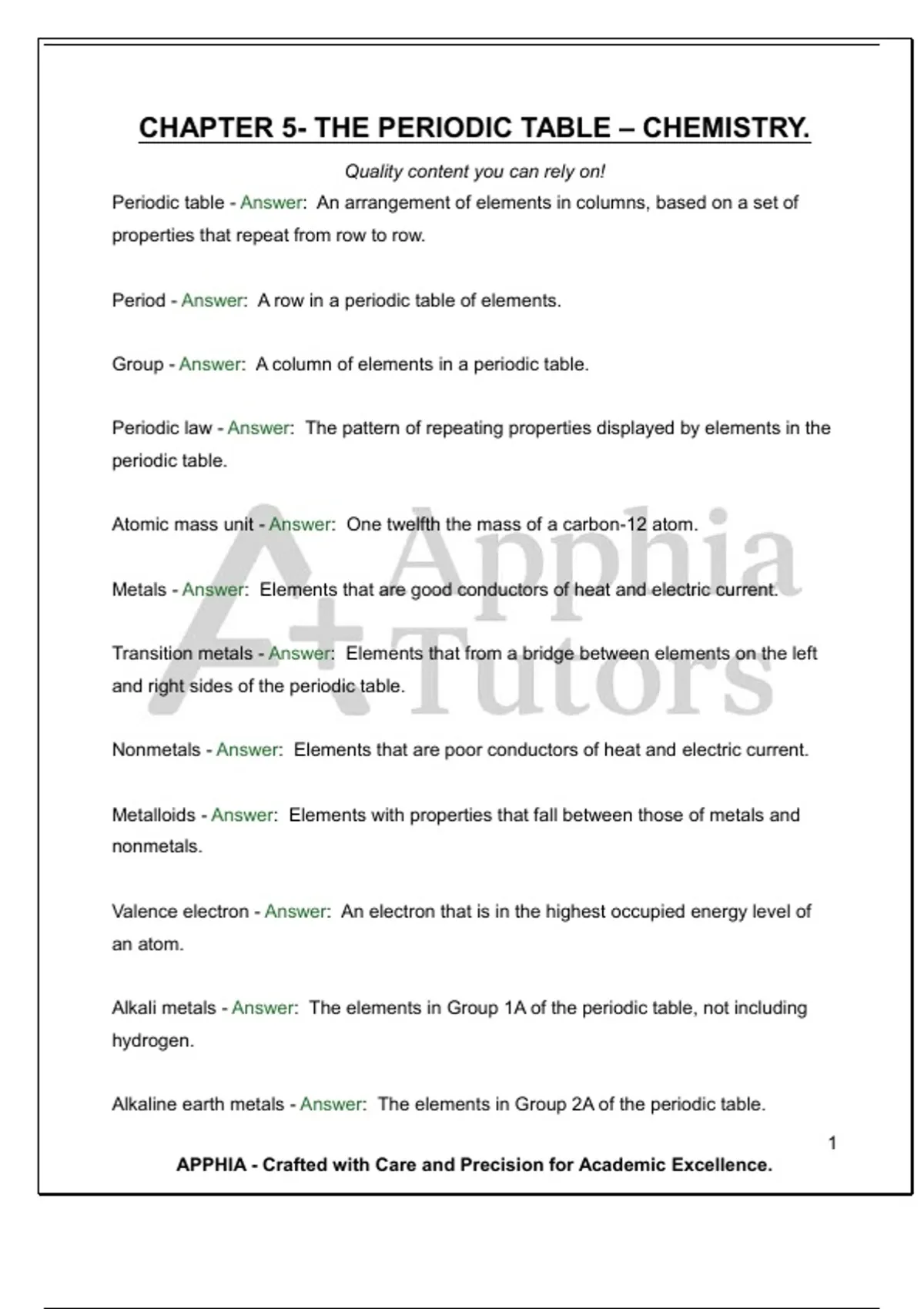 CHAPTER 5- THE PERIODIC TABLE – CHEMISTRY. Quality content you can rely on!