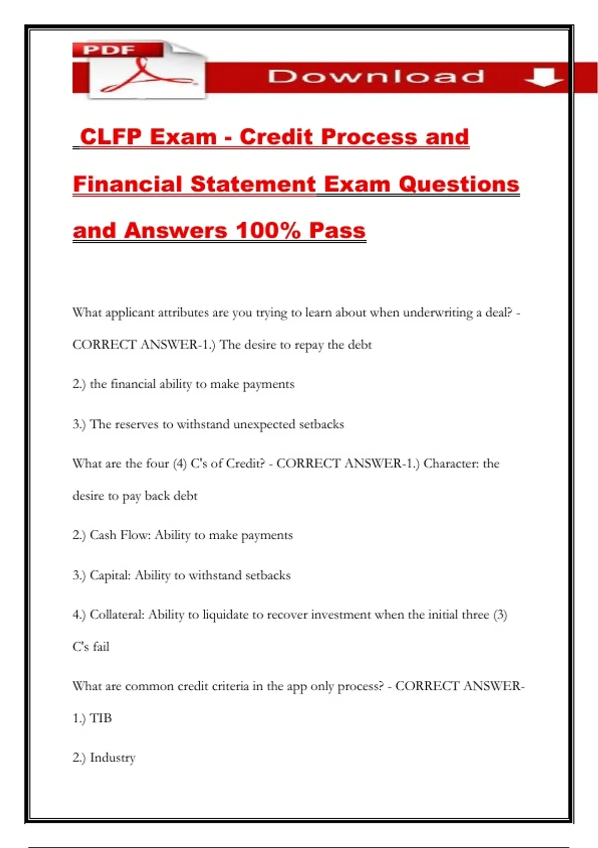 CLFP Exam - Credit Process and Financial Statement Exam Questions and Answers 100% Pass