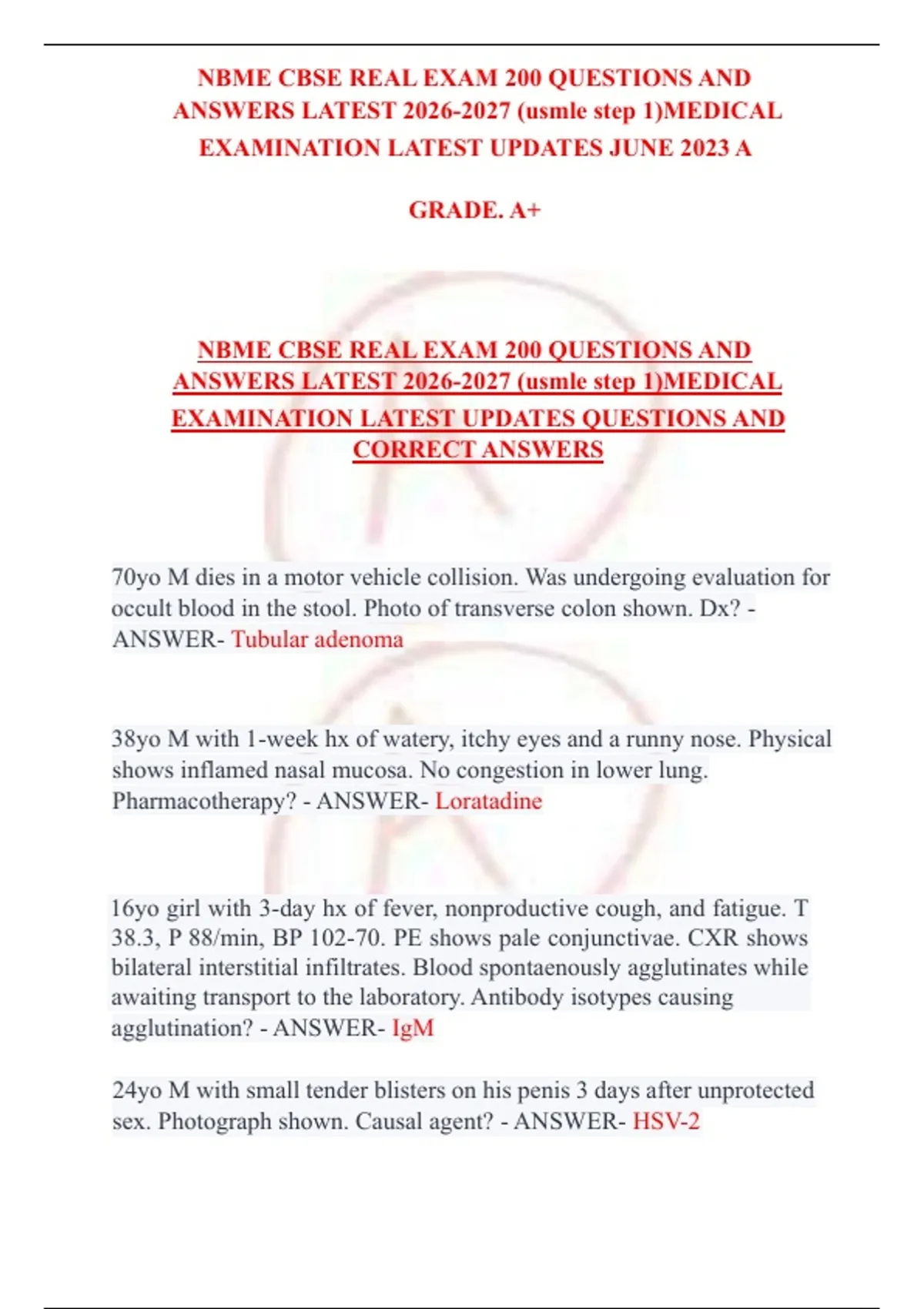 NBME CBSE REAL EXAM 200 QUESTIONS AND