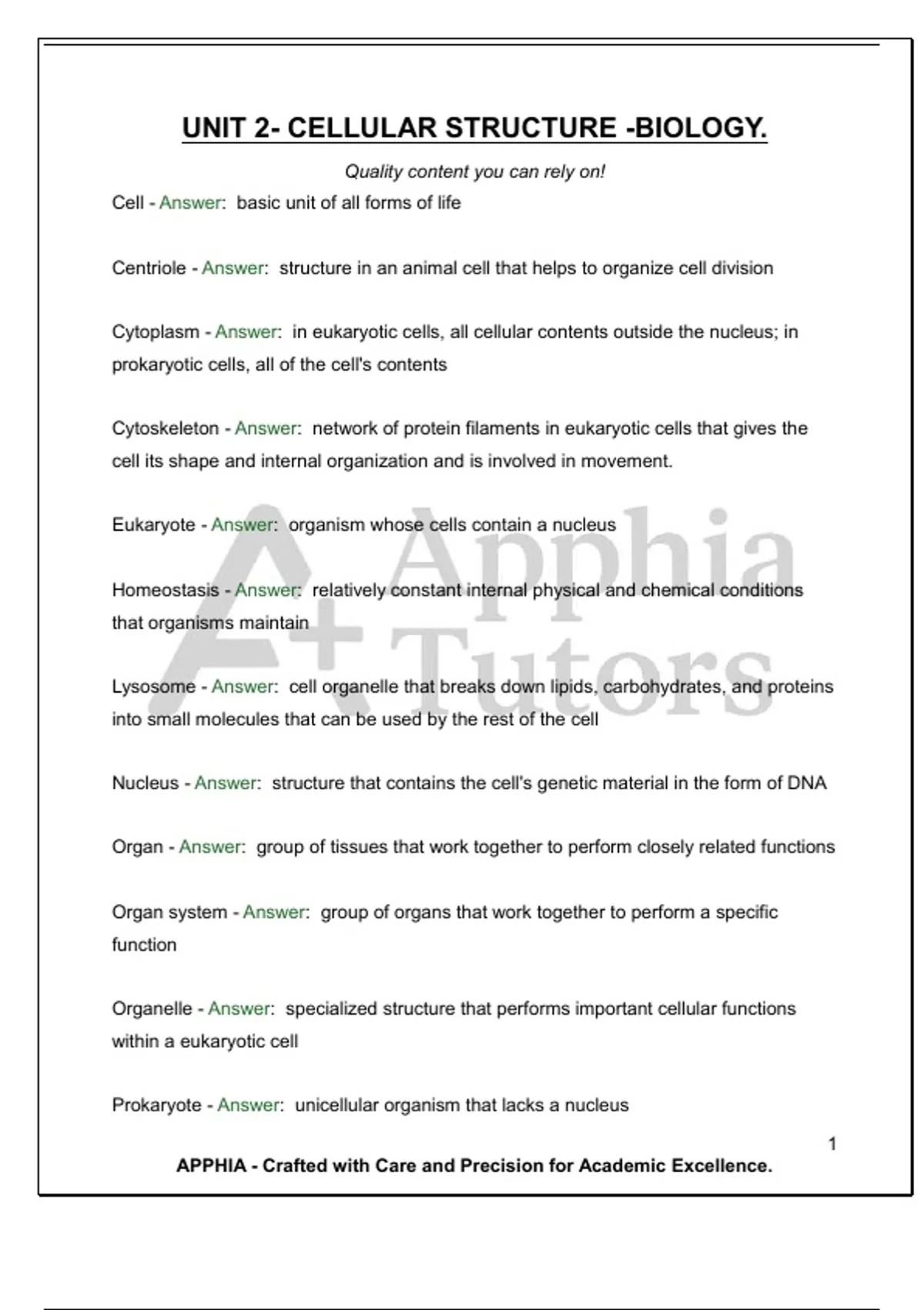UNIT 2- CELLULAR STRUCTURE -BIOLOGY. Quality content you can rely on!
