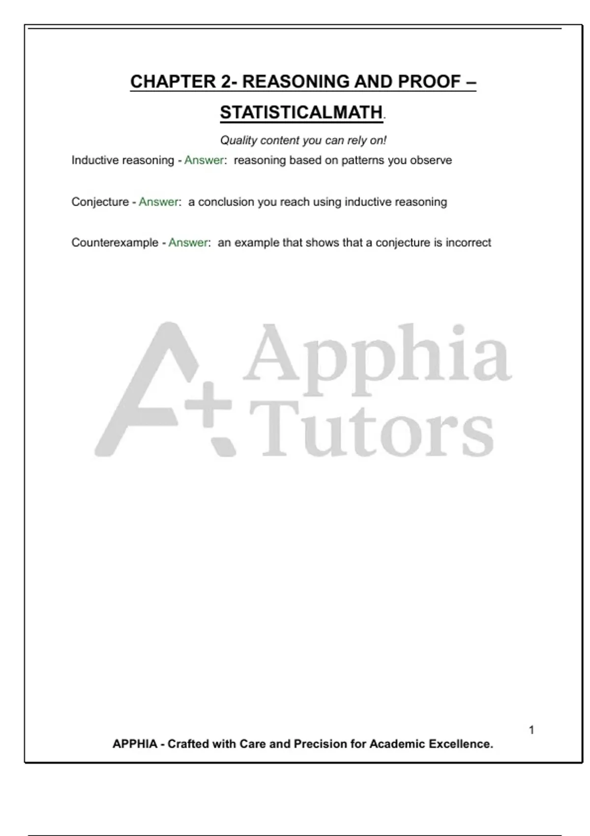 Inductive reasoning - Answer: reasoning based on patterns you observe