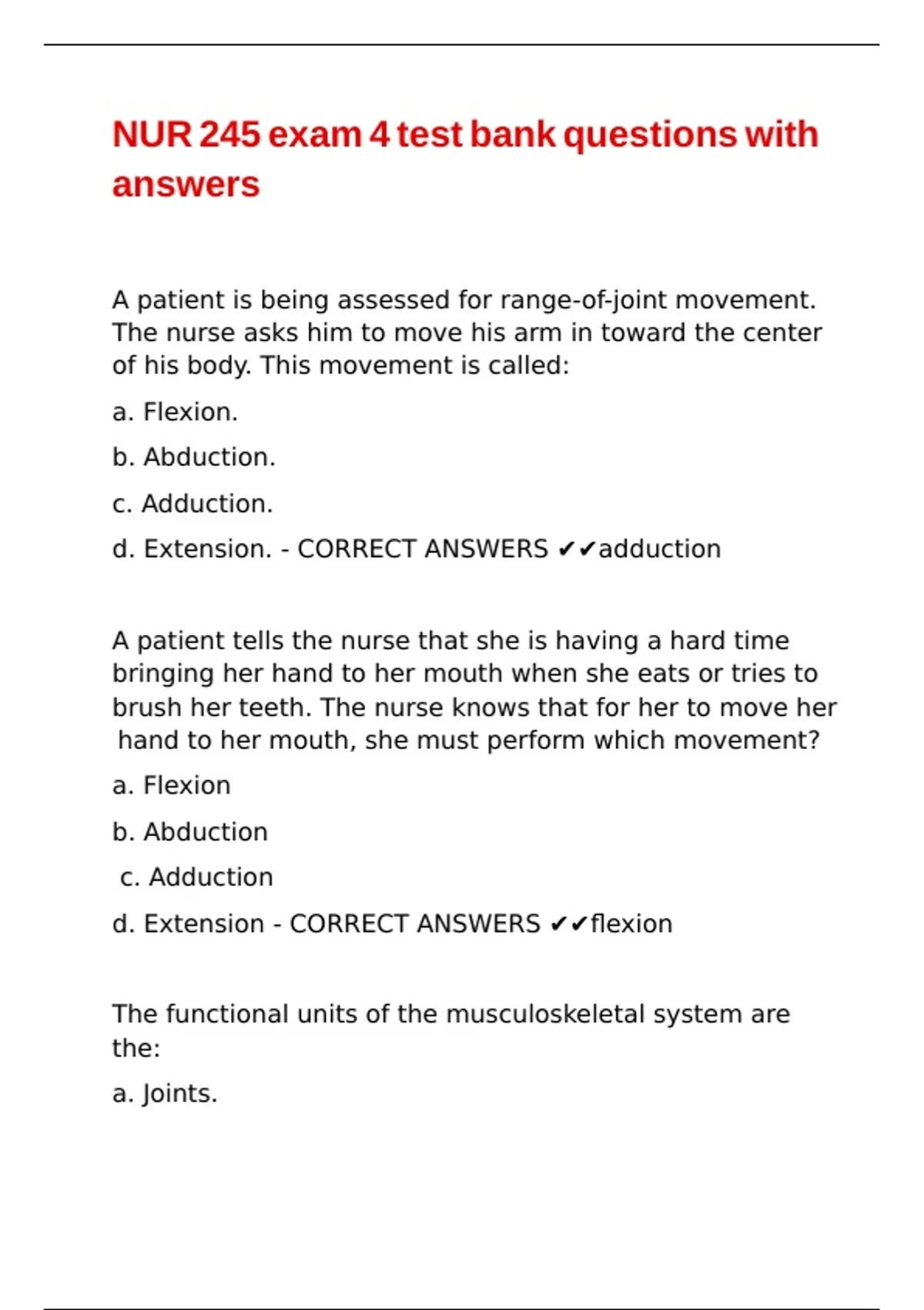 d. Extension - CORRECT ANSWERS ✔✔flexion