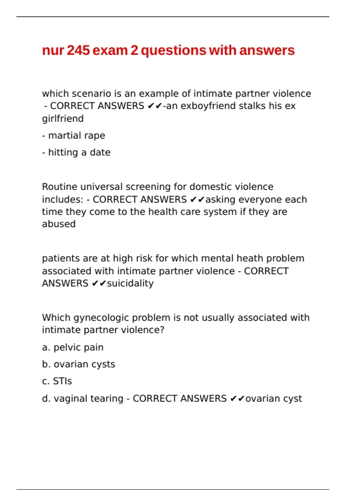 CORRECT ANSWERS ✔✔abuse during pregnancy |\ |\ |\ |\
