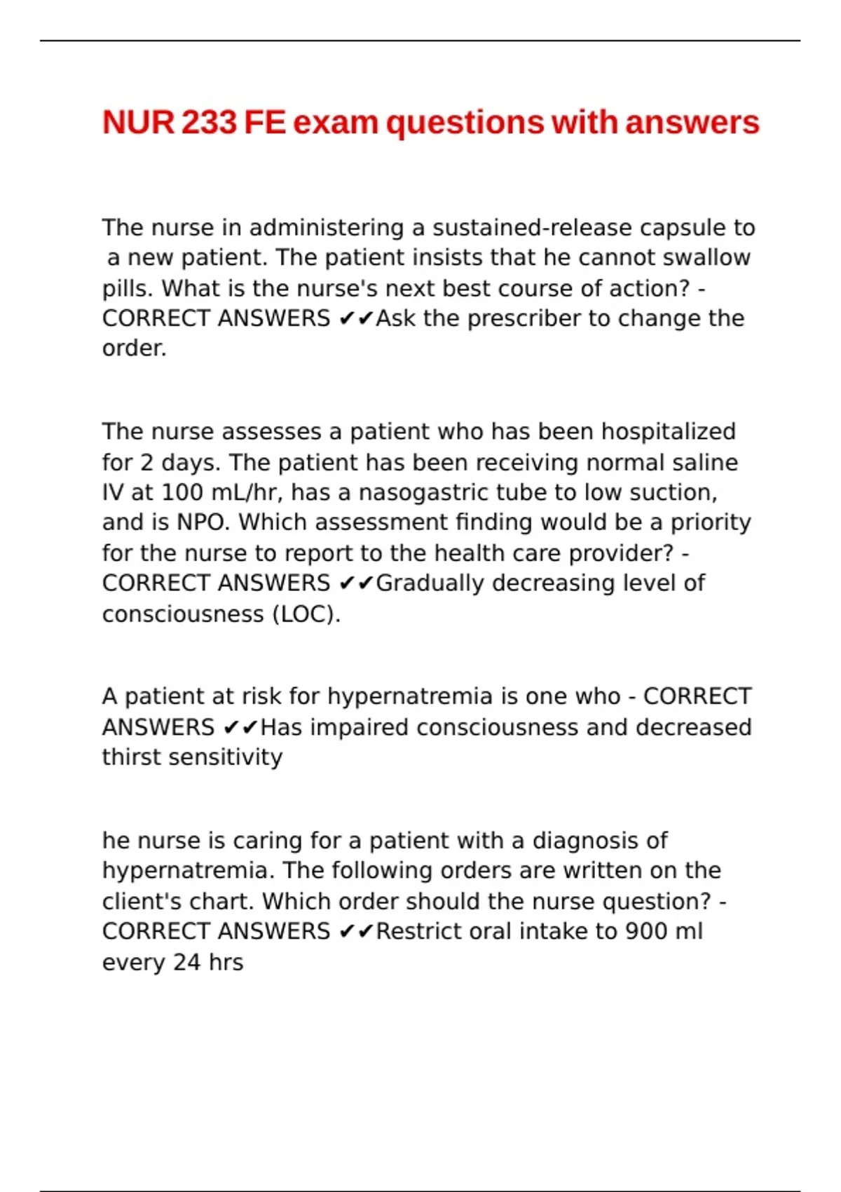 CORRECT ANSWERS ✔✔Restrict oral intake to 900 ml |\ |\ |\ |\ |\ |\ |\ |\
