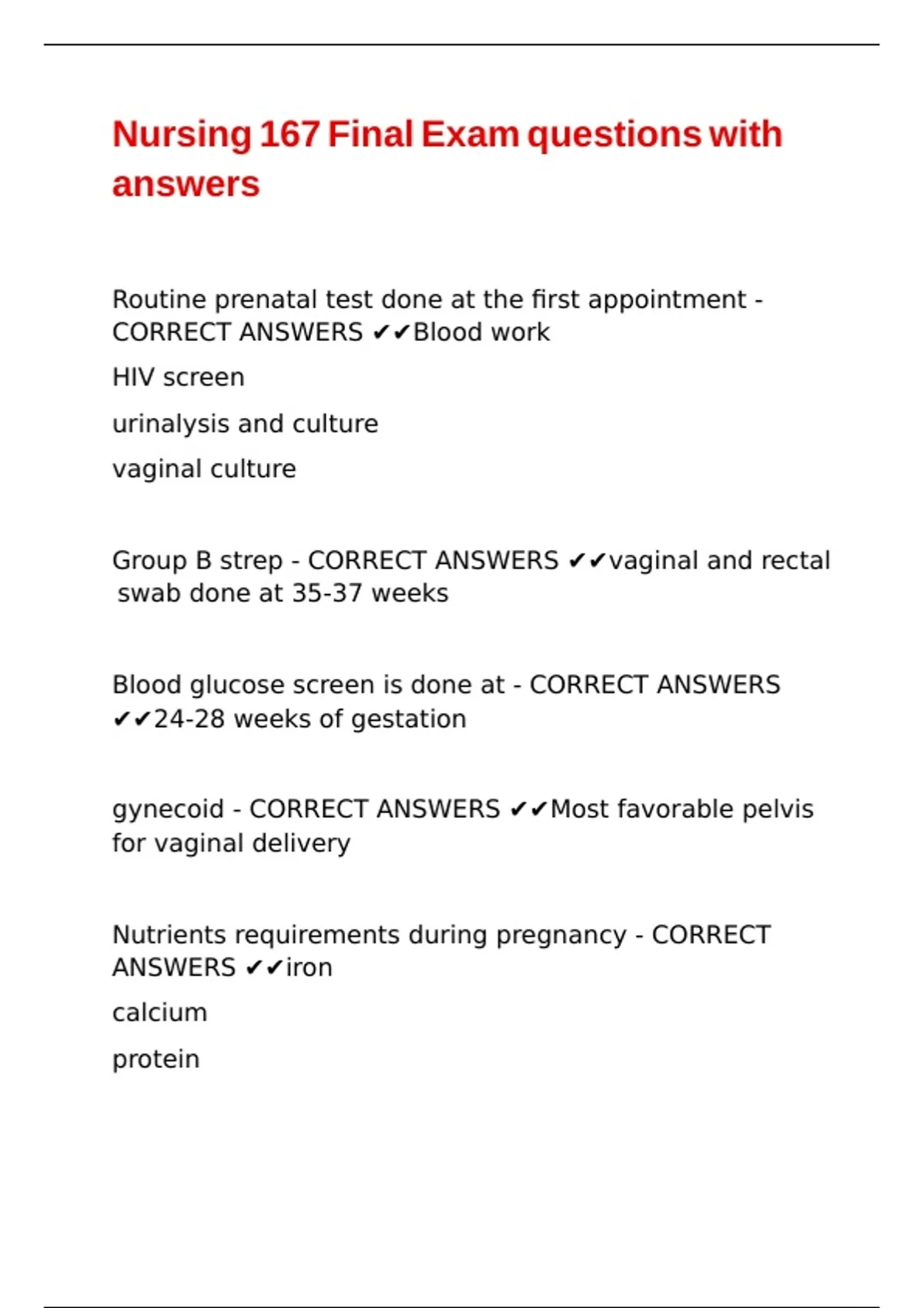 CORRECT ANSWERS ✔✔Blood work |\ |\ |\