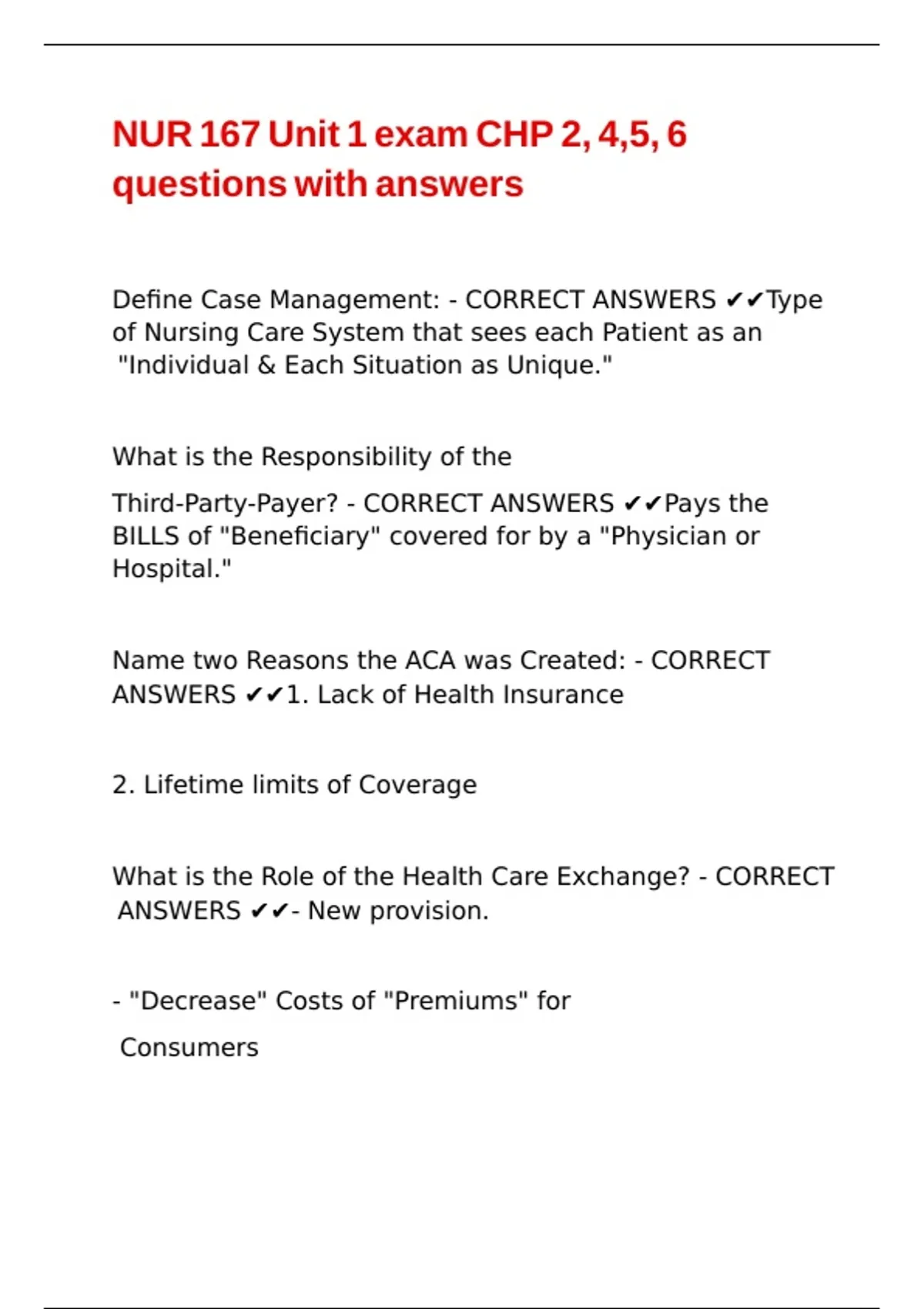 CORRECT ANSWERS ✔✔1. Medical Necessity |\ |\ |\ |\